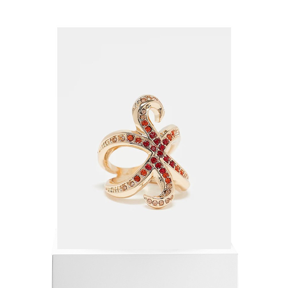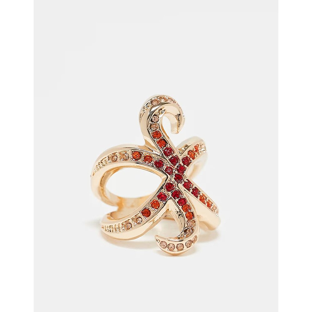 1h可退 香港直邮ASOS 女士 设计海星红色水晶色调戒指(金色)