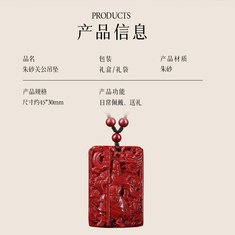 遇见普陀山朱砂关羽吊坠武财神男士挂件护身符天然紫金砂关公项链