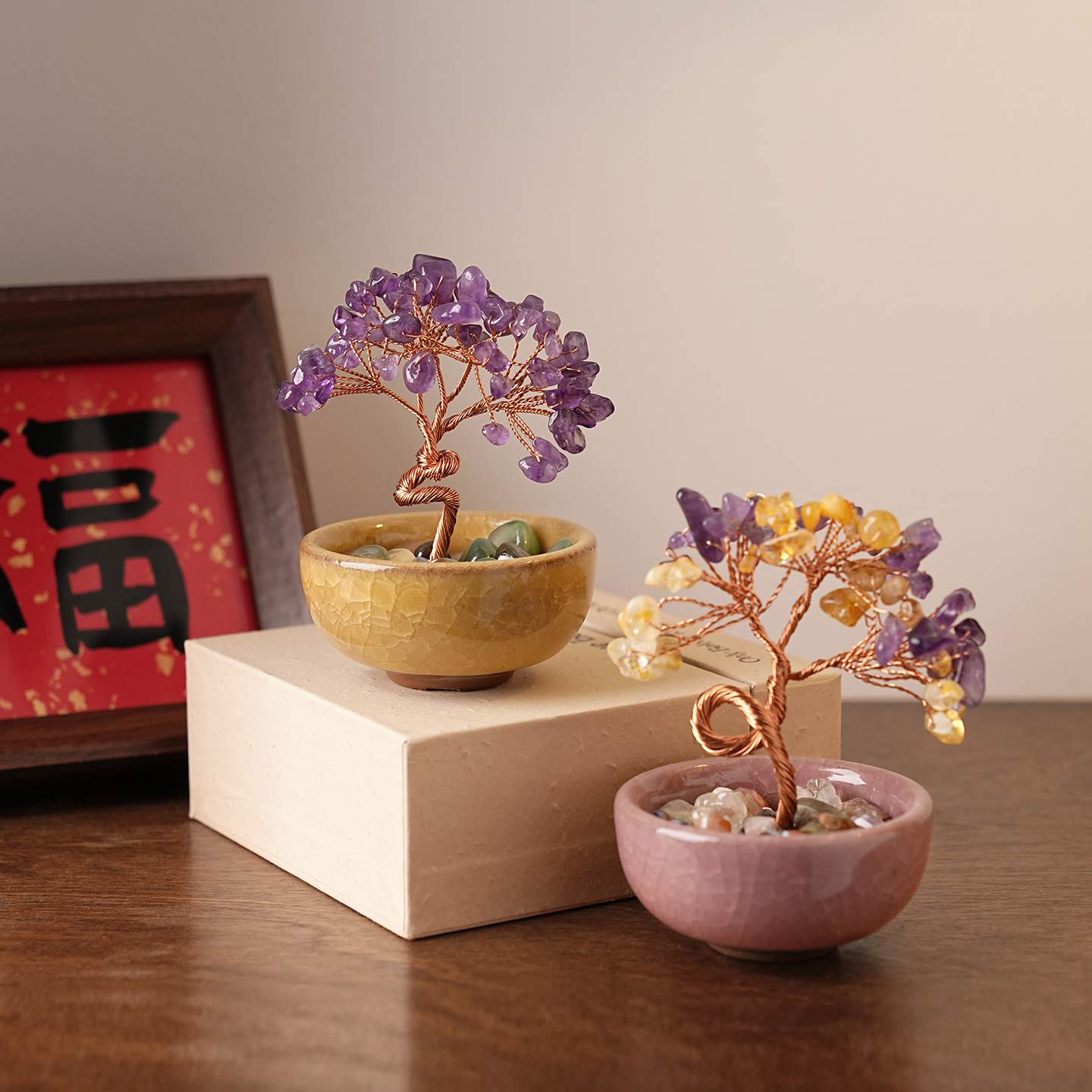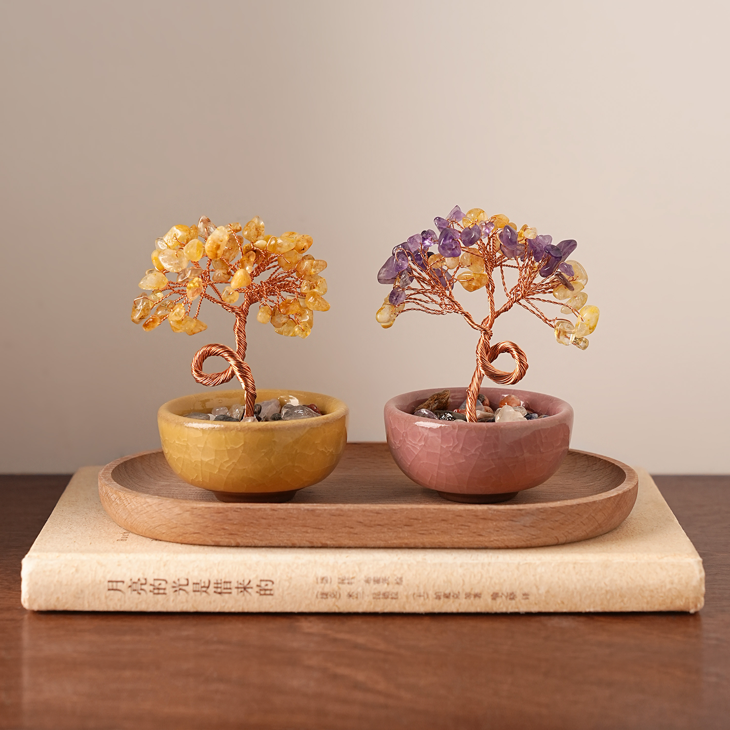 贝汉美天然黄水晶发财树摆件办公室工位神器桌面装饰品送朋友好物