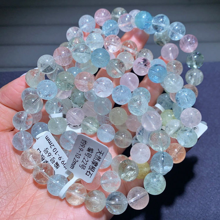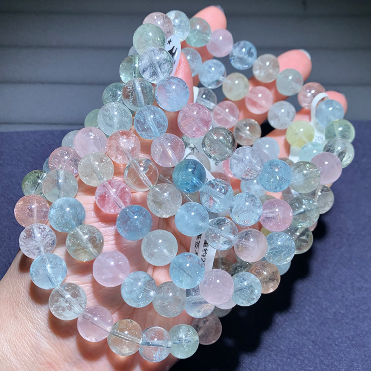 天然摩根石糖果色海蓝宝绿柱石水晶手串冰透单圈手链情侣送礼物女