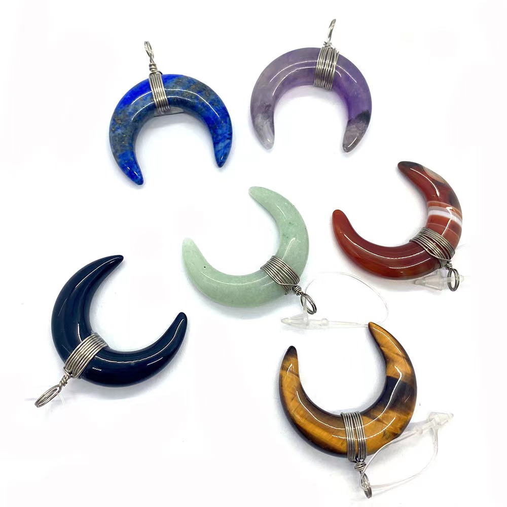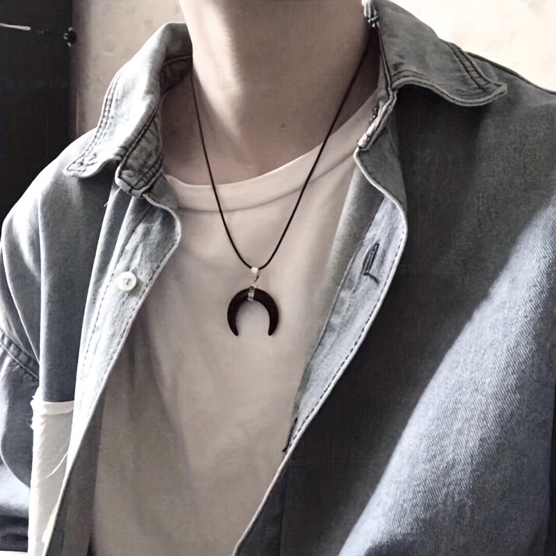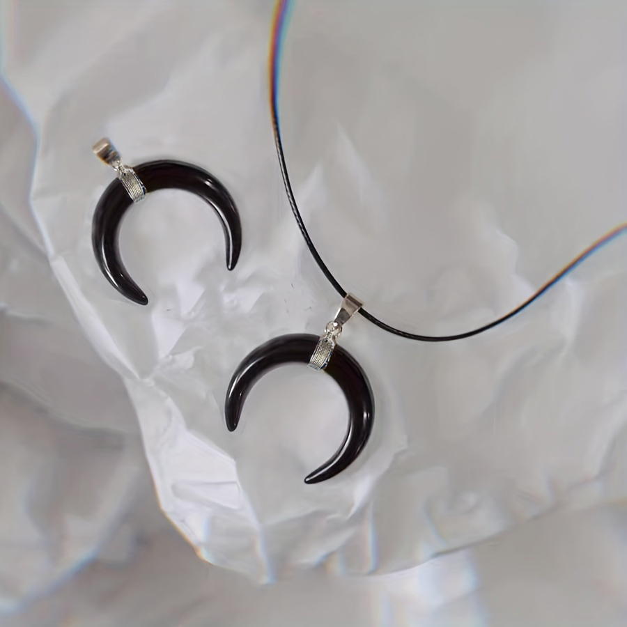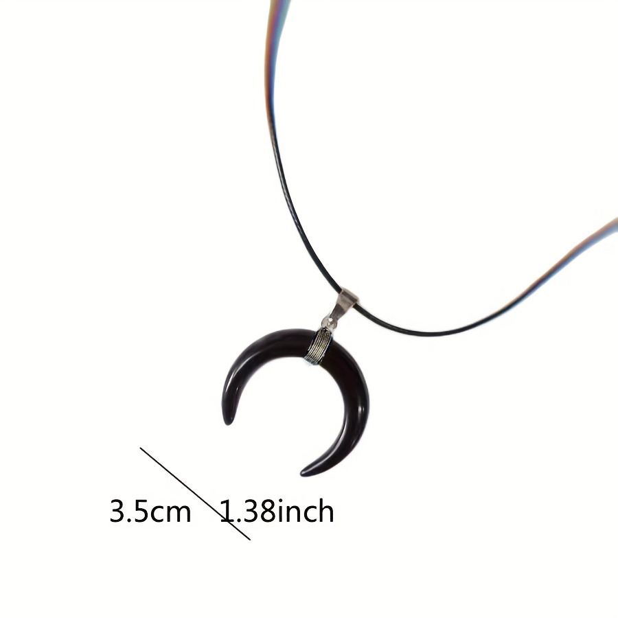 酷黑朋克黑色月亮项链 黑曜石月牙潮男女长锁骨项链