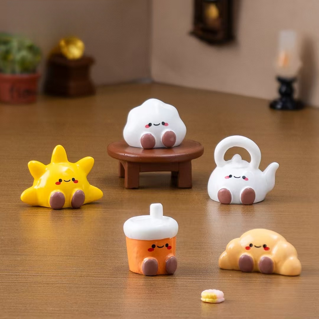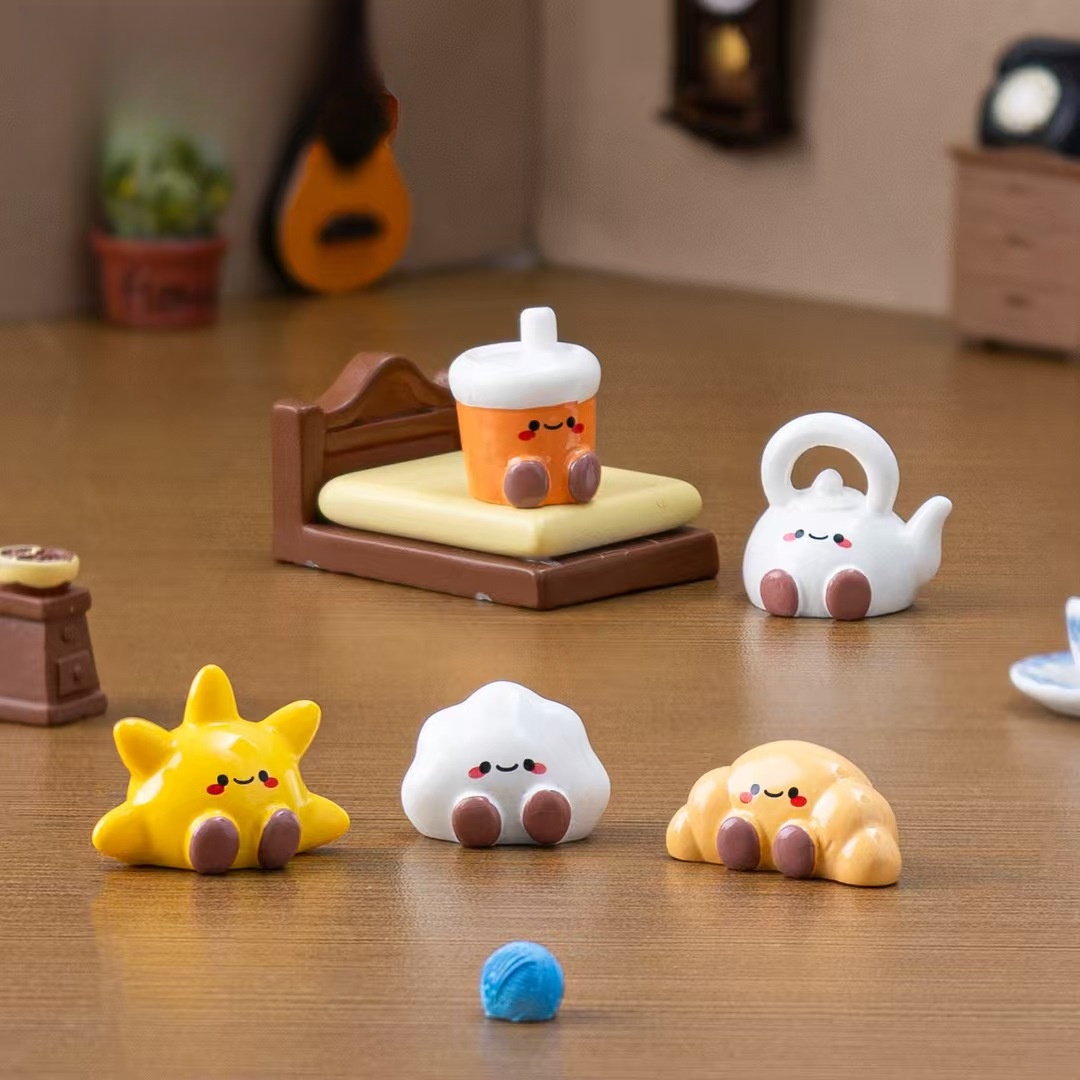 可爱奶茶牛角包治愈小萌物公仔 娃屋diy装饰品挂配件微景观小摆件