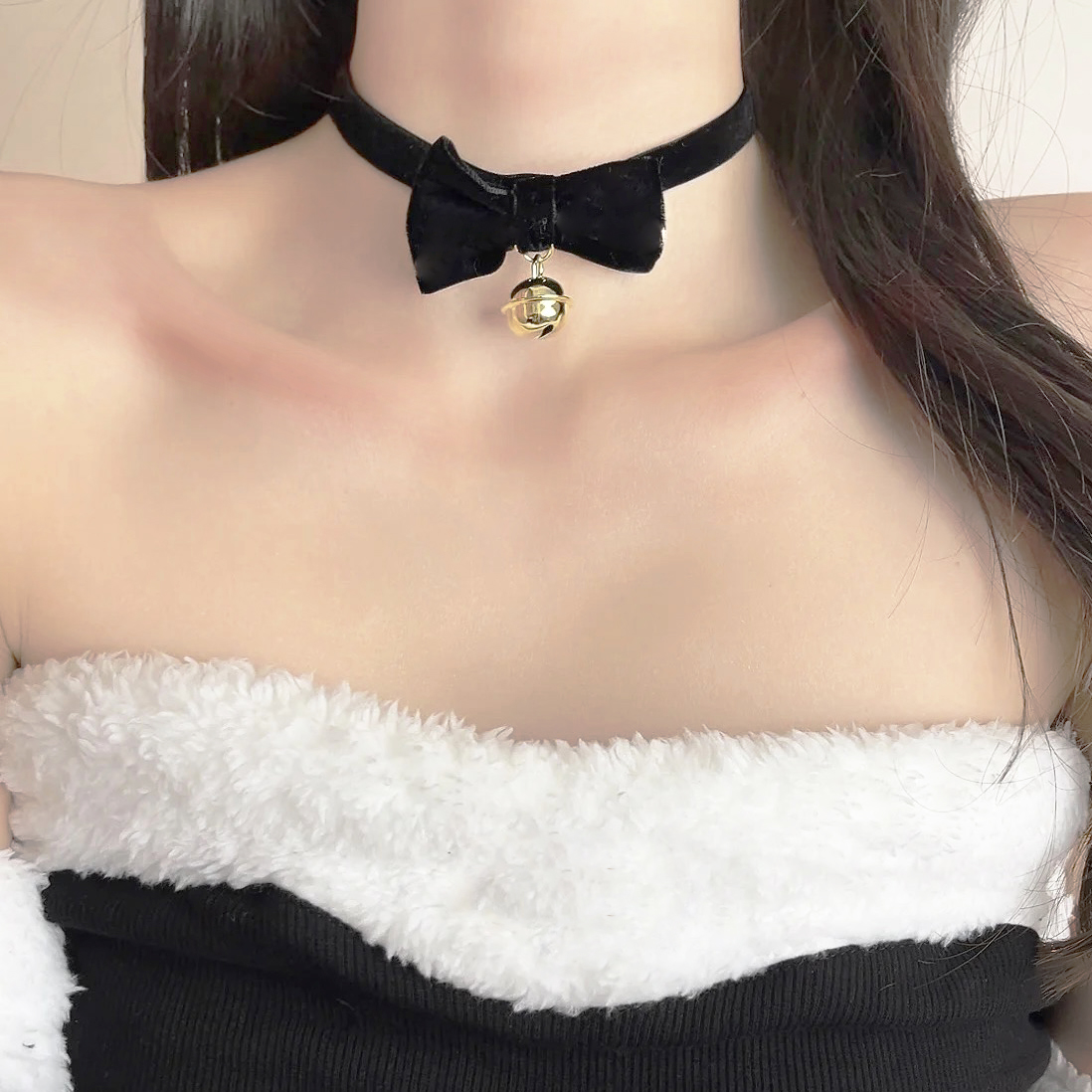 圣诞节铃铛蝴蝶结项圈复古红色丝绒锁骨链choker项链颈带大腿环女