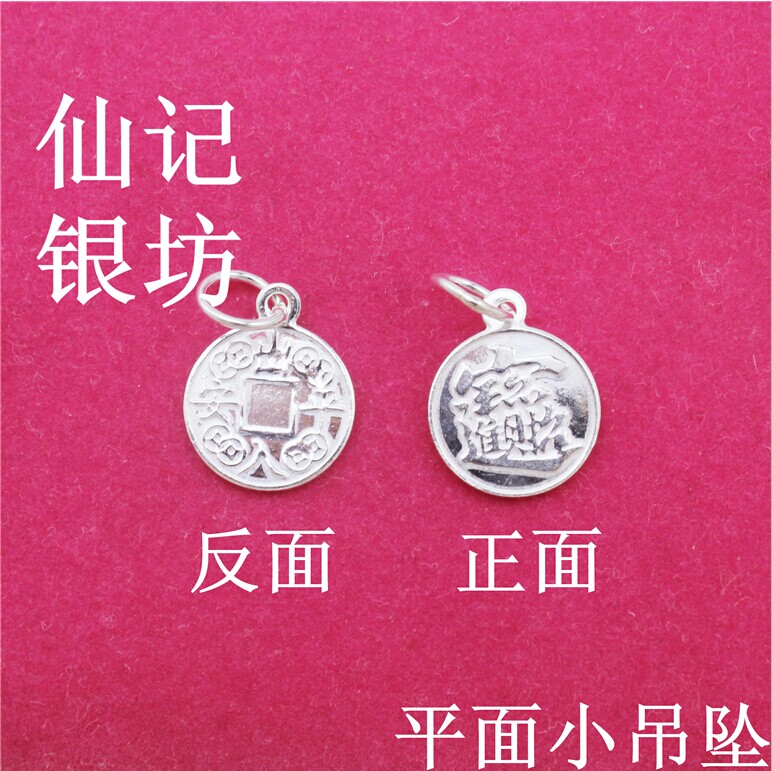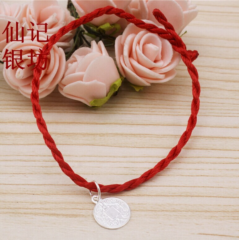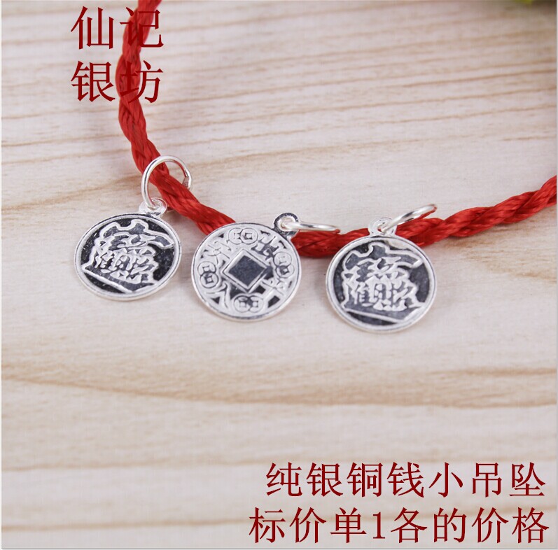 999纯银吊坠园片 出入平安红绳手链diy项链银饰配件 足银挂坠女