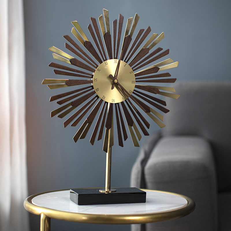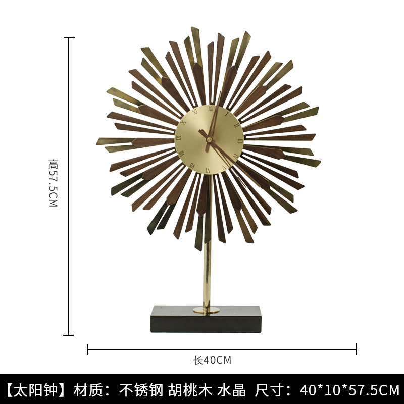 轻奢客厅装饰品创意抽象太阳钟摆E件简约金属工艺品玄关摆设