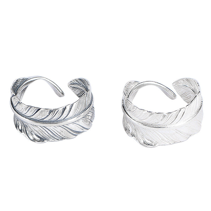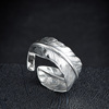 银曼 925银羽毛m戒指潮人开口男士戒指日韩创意个性高桥吾郎女指
