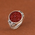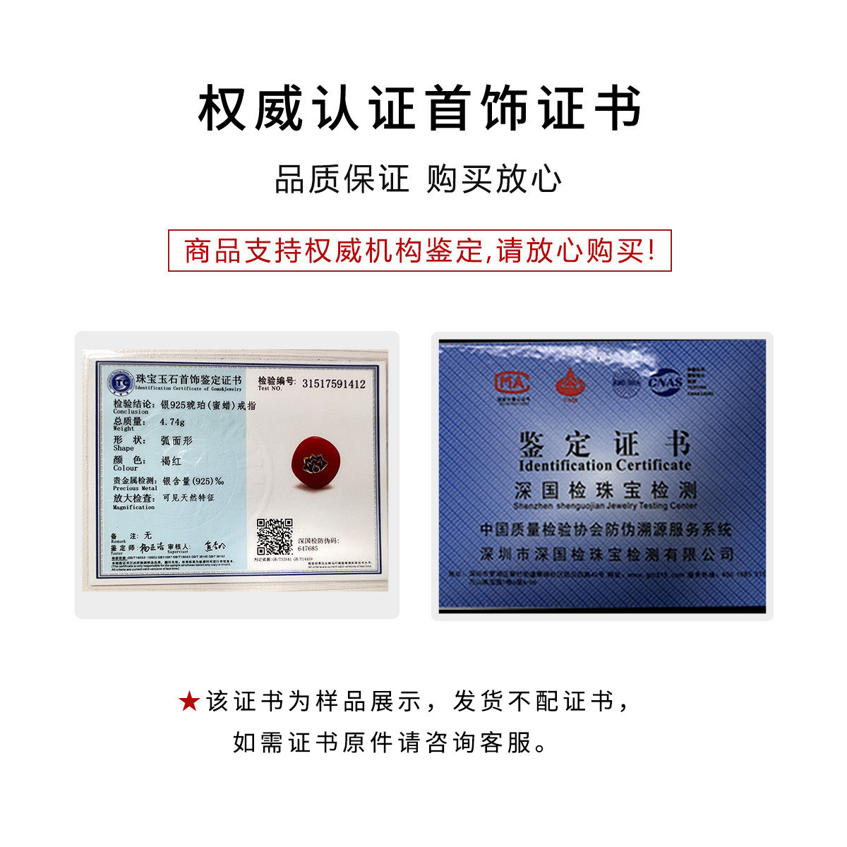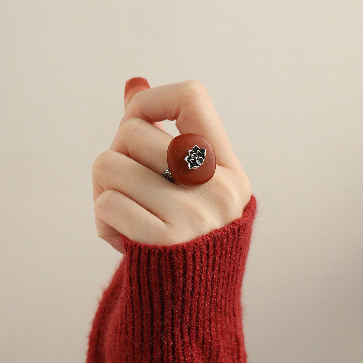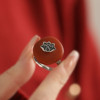 925纯银莲花柿饼琥珀蜜蜡戒指女2025年可调节指环国风新中式礼物