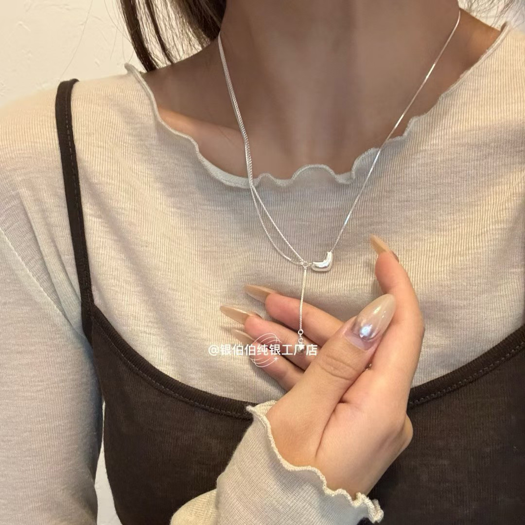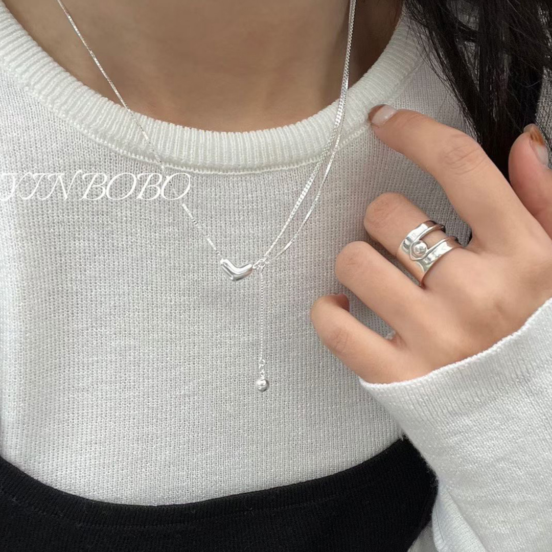 银伯伯925纯银爱心项链女小众设计感双层不对称调节高级锁骨链