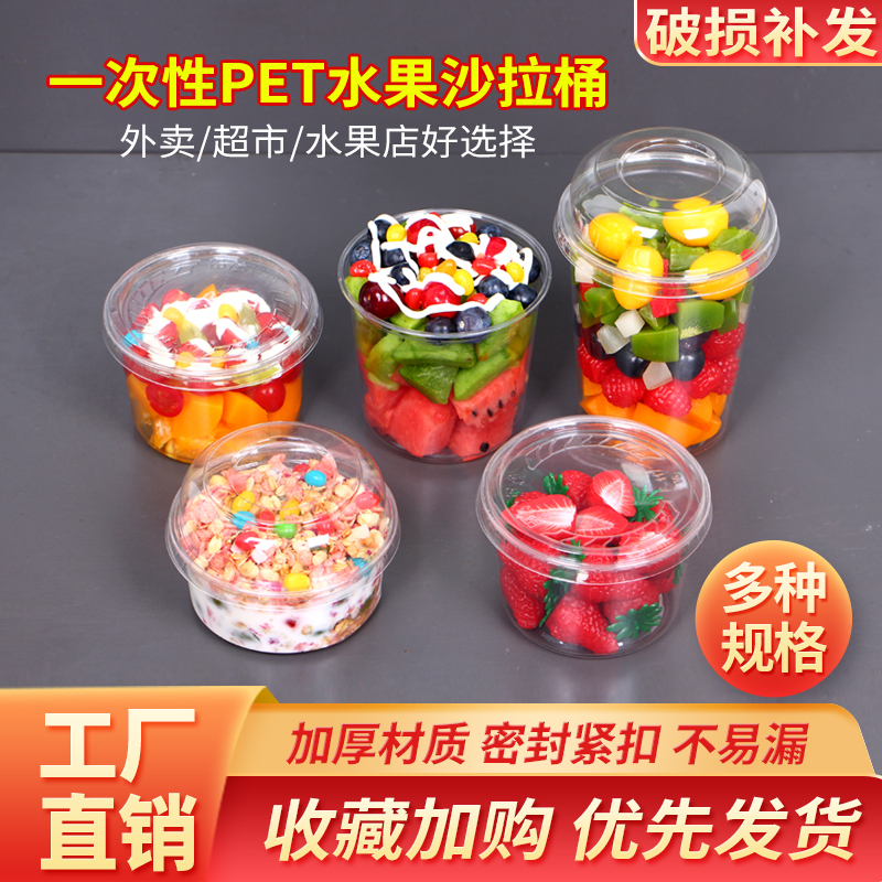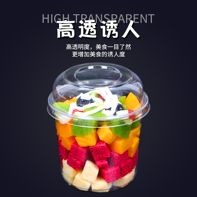 一次性鲜果切水果杯加厚透明PET塑料桶波波杯干果酸奶千层盒带盖