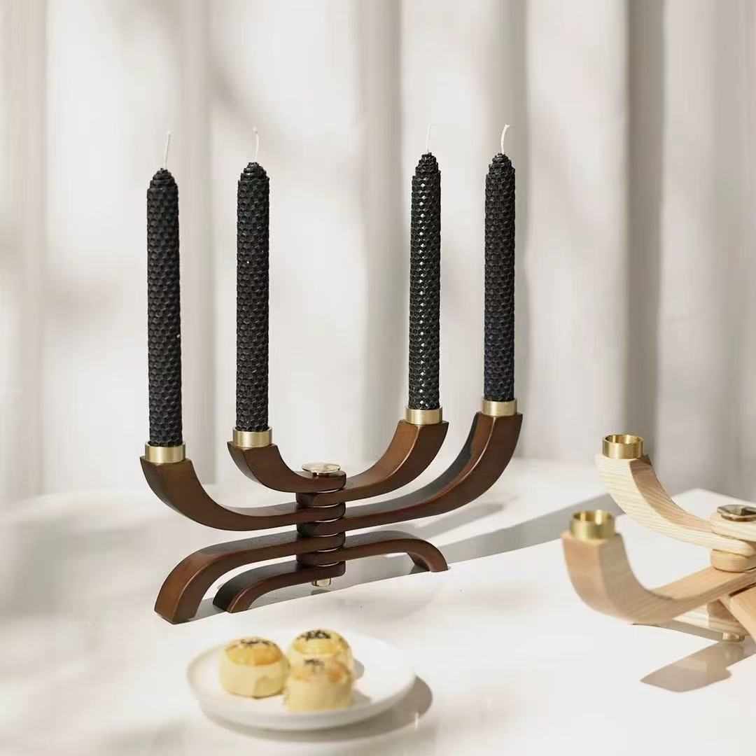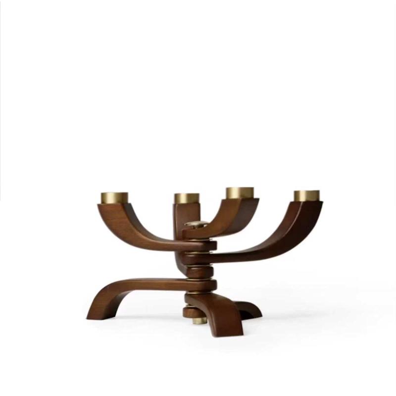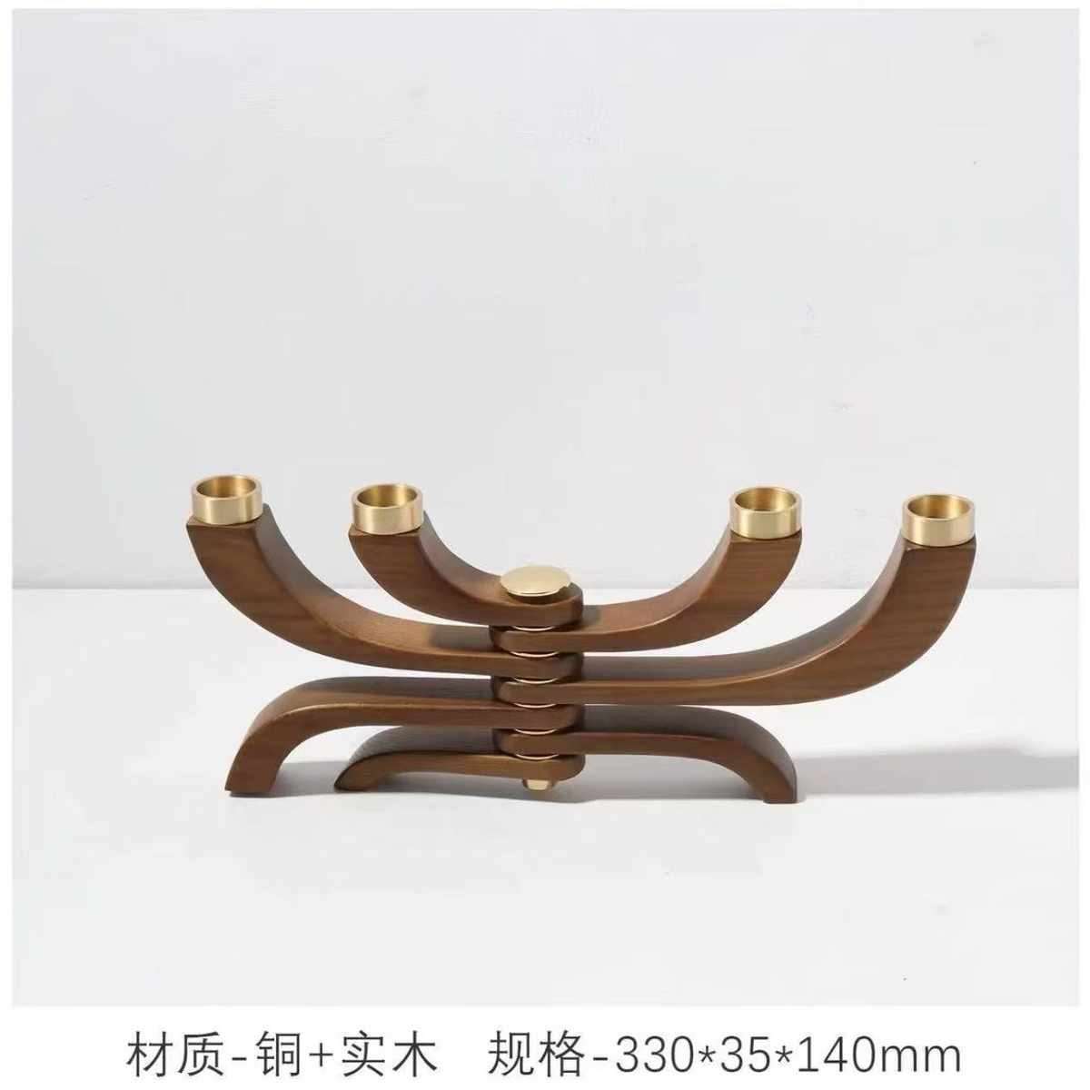 现代轻奢金属实木烛台蜡烛样板房售楼处餐桌装饰摆件酒店会所民宿