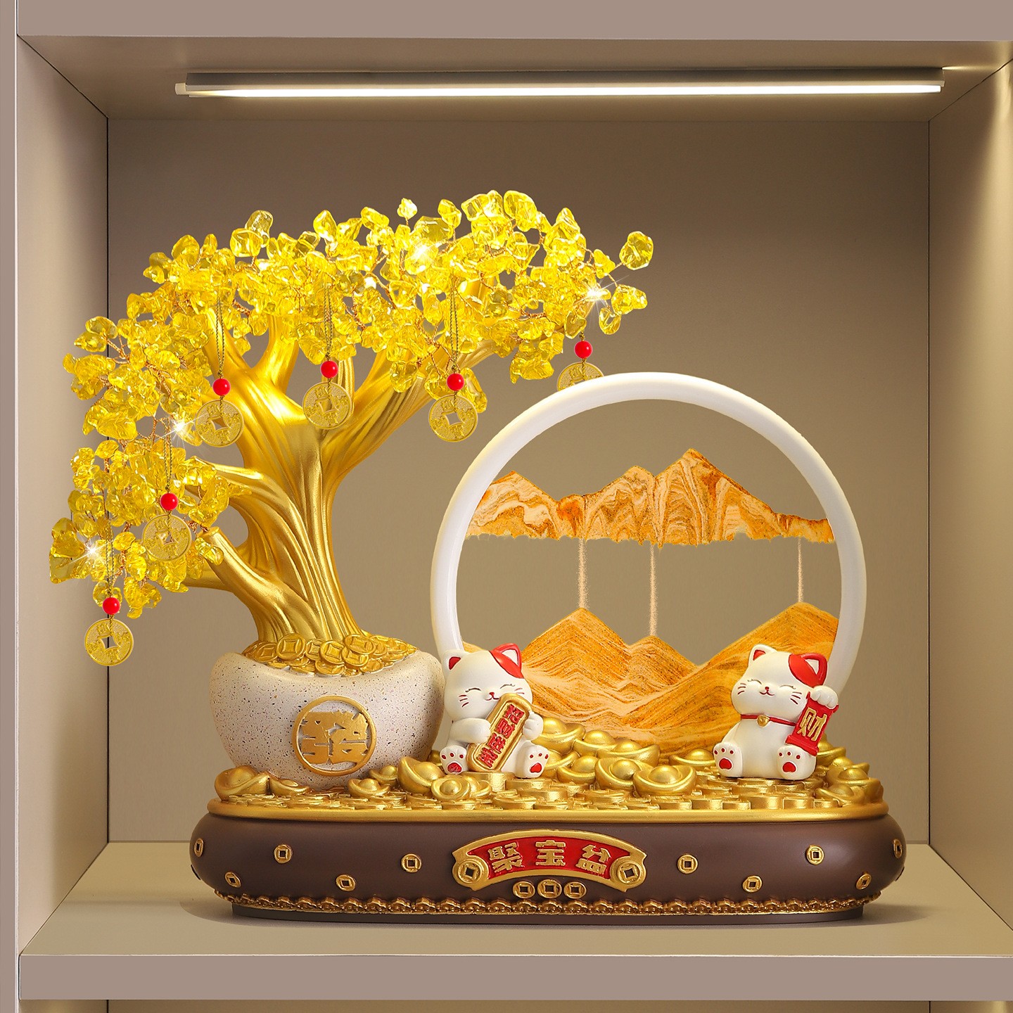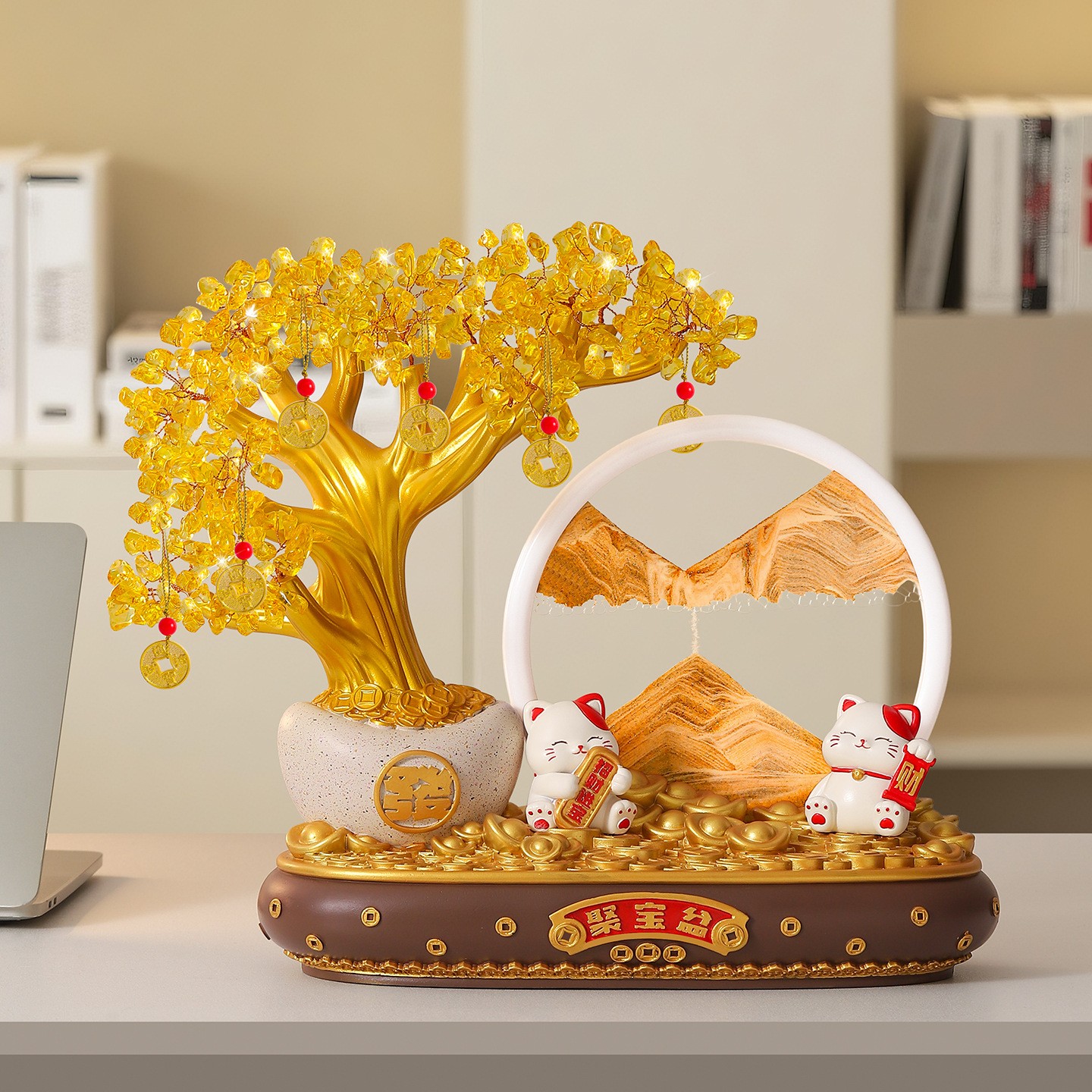 发财树招财猫摆件店铺前台家居酒柜财源滚滚高档装饰开业乔迁礼物
