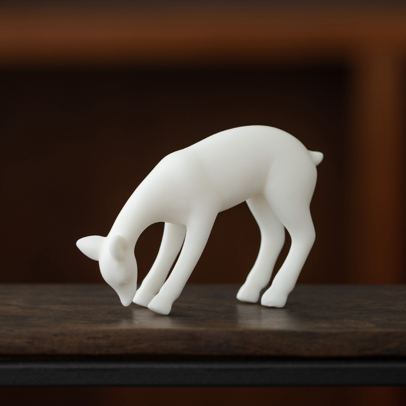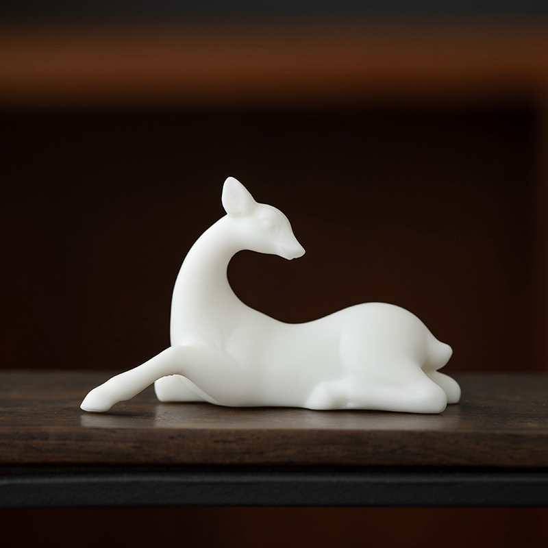 德化陶瓷摆件灵芝鹿中式装饰 家居客厅办公室酒柜休闲厅摆设 创意