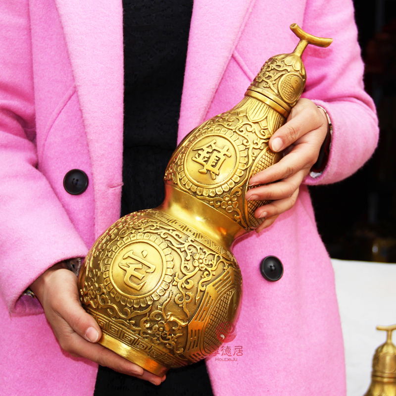 铜葫芦开盖铜葫芦 铜葫芦摆件家居客厅玄关摆设 铜百福葫芦摆件