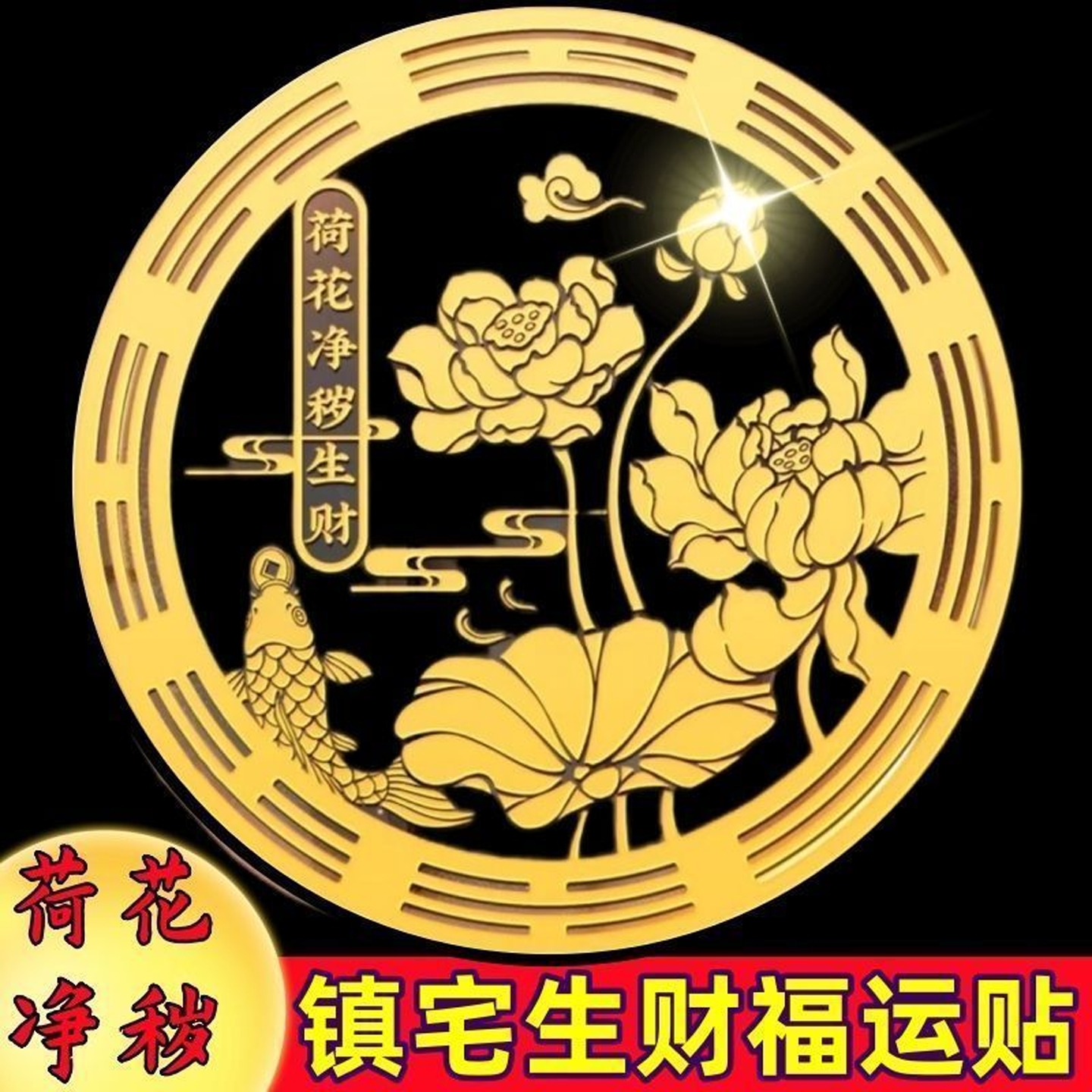 荷花鲤鱼净秽图开门见鞋柜厕所厨房荷花贴画卫生间莲花锦鲤鞋柜贴