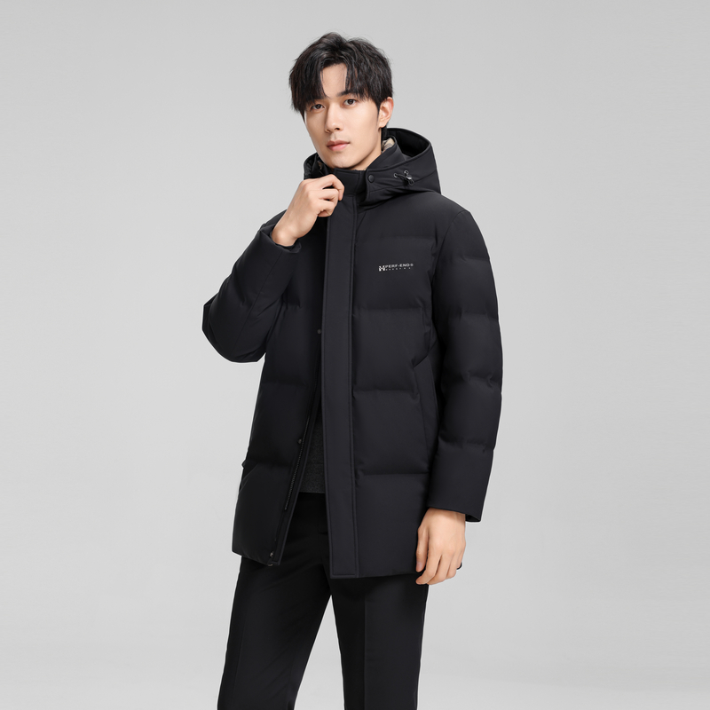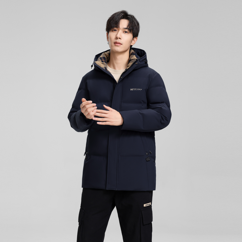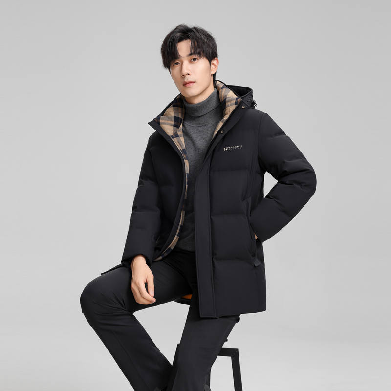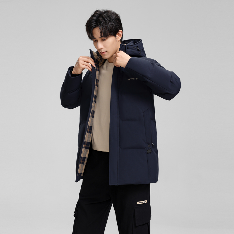 雪中飞2025冬新款男士中长款羽绒服可拆帽商务复古拼接格加厚