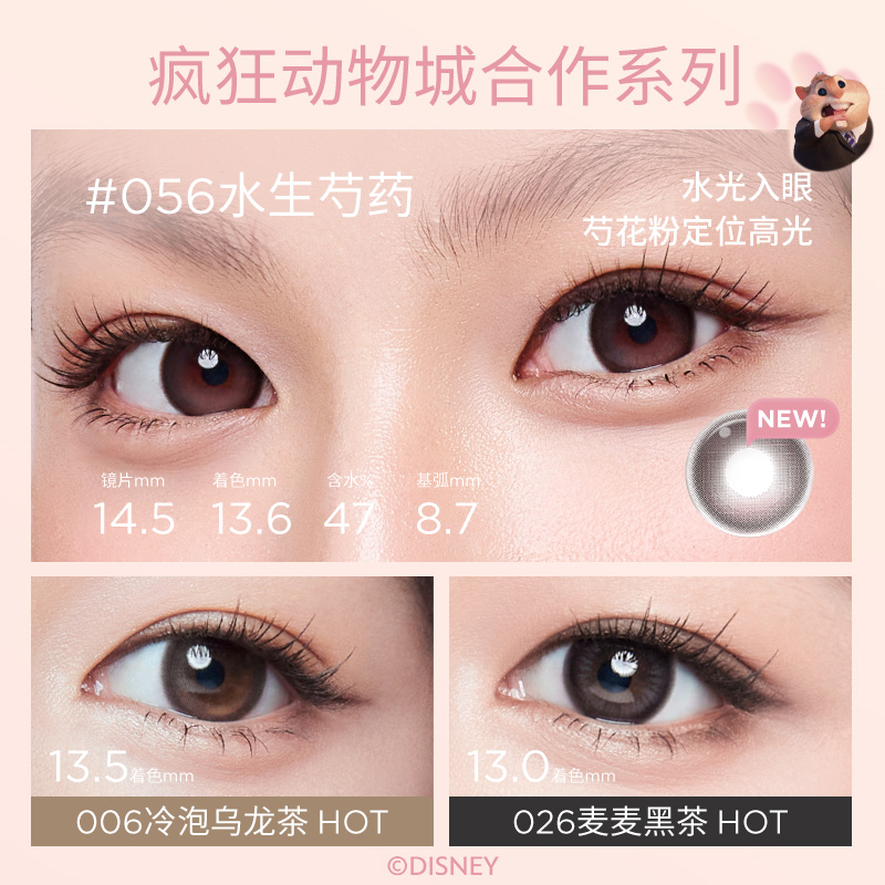 moody疯狂动物城硅水凝胶美瞳月抛2片高透氧彩色隐形眼镜水生芍药