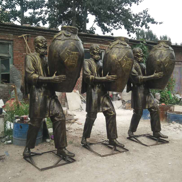 玻璃钢仿铜酒文化人物雕塑招财迎宾街头步行街制酒流程摆件现货