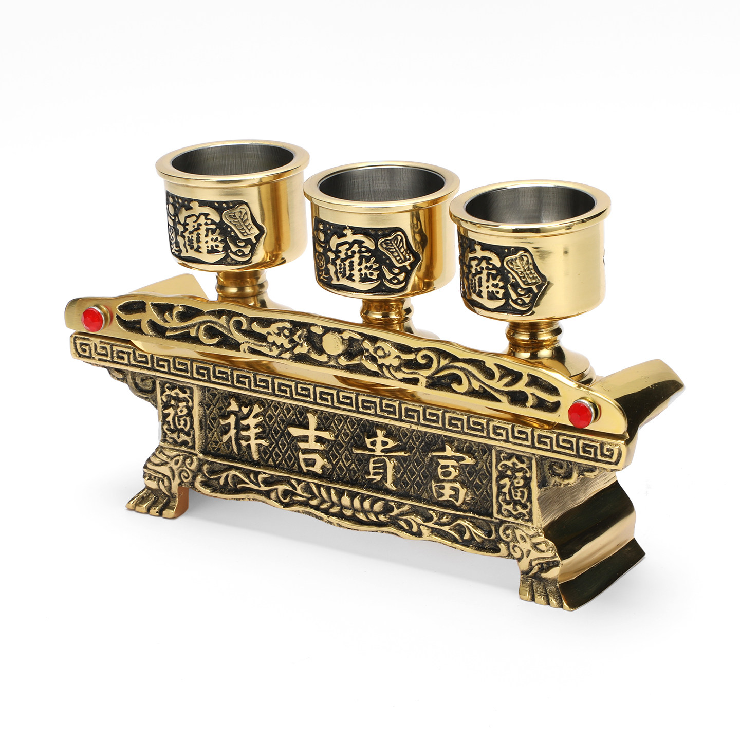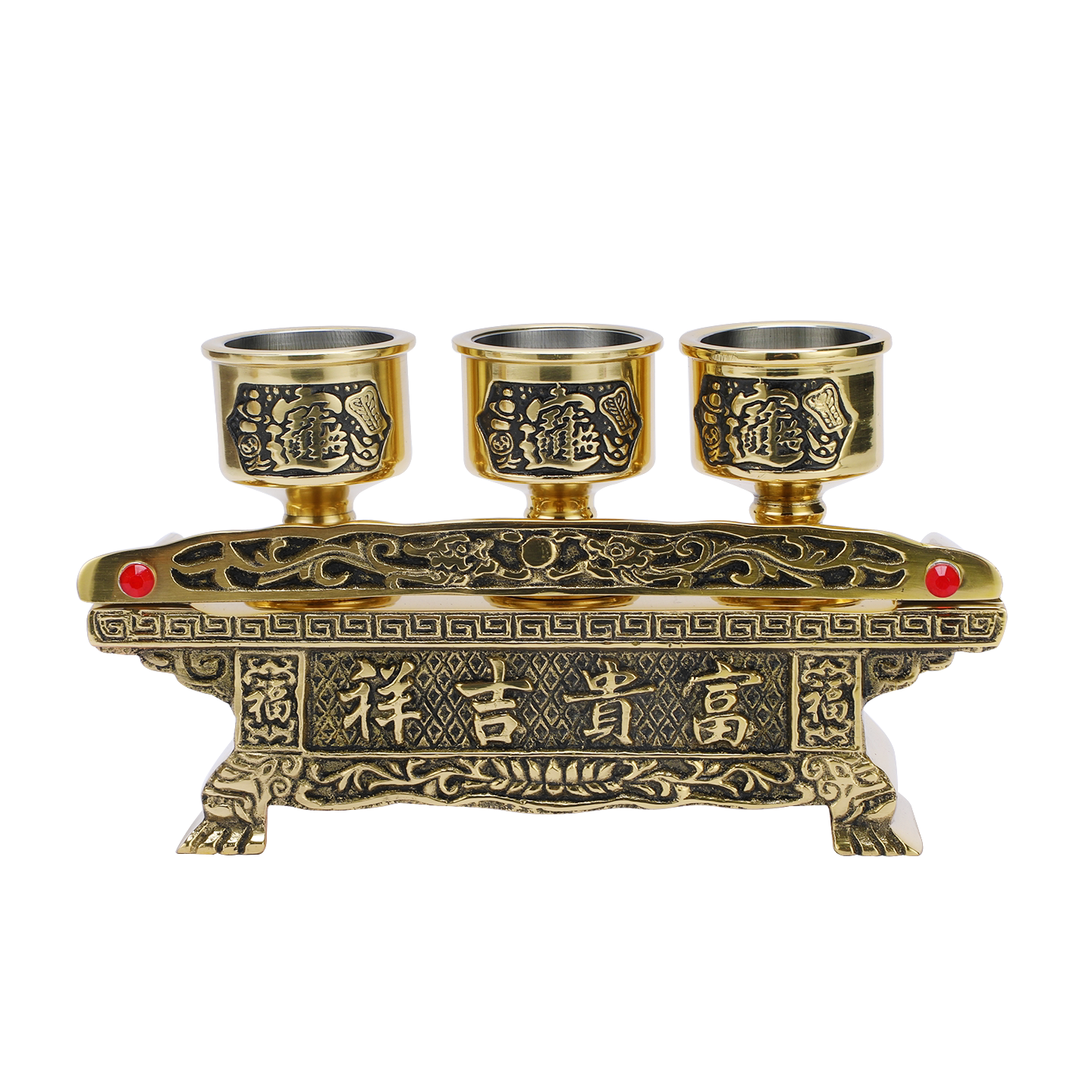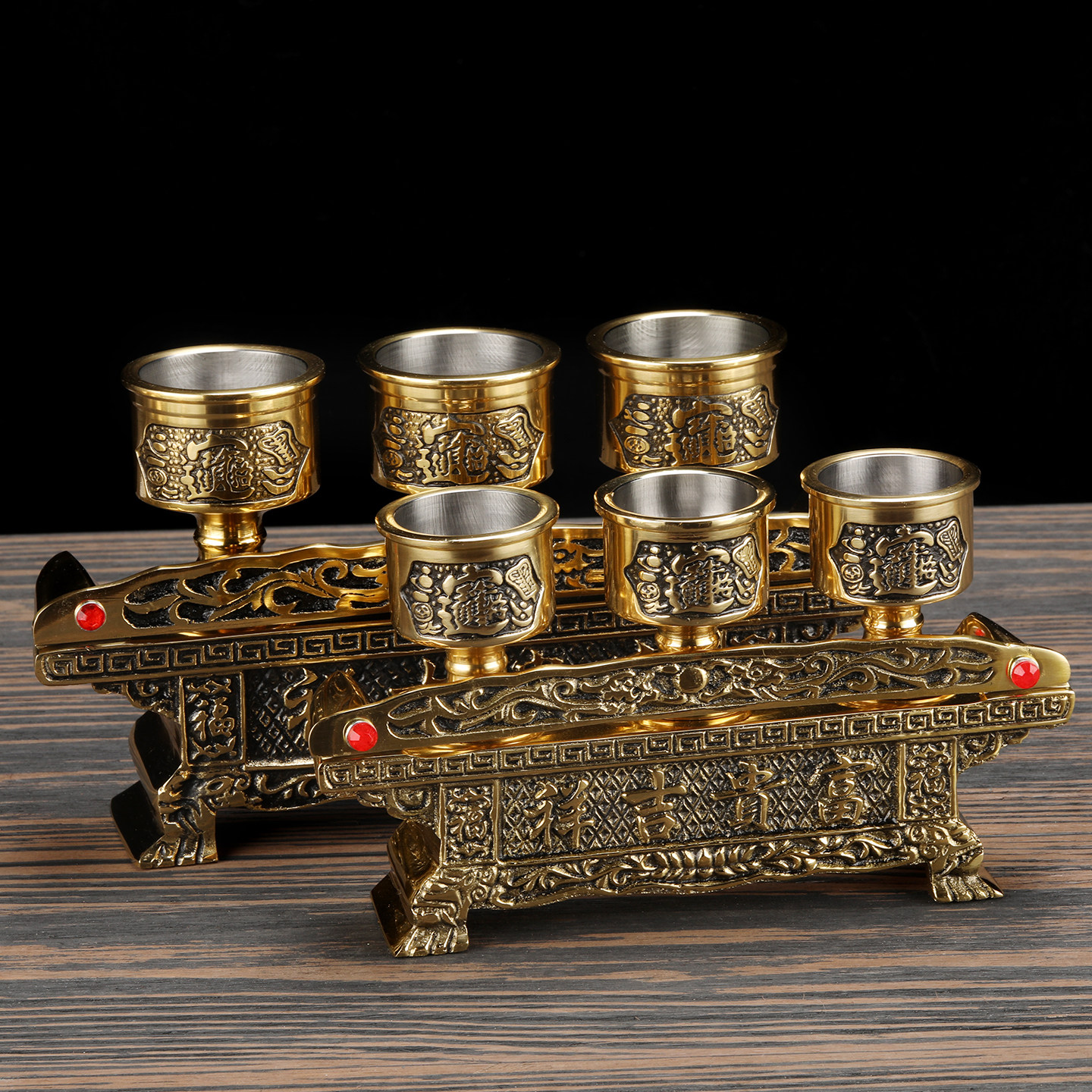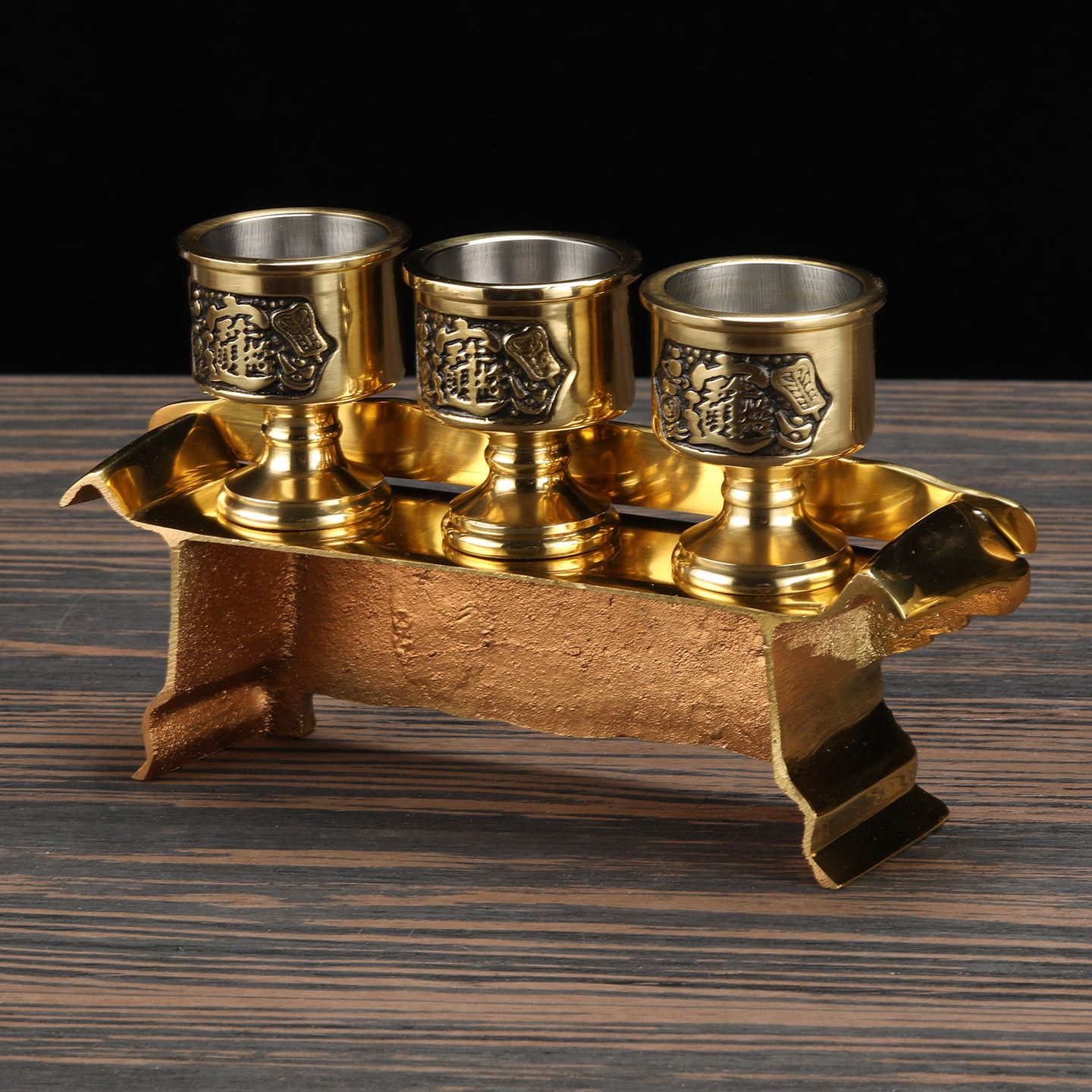 复古纯黄铜贡台套装纯金属雕花装饰工艺品招财酒杯配富贵吉祥供台