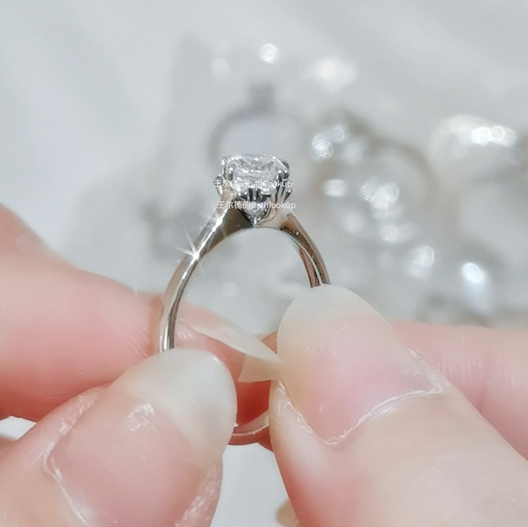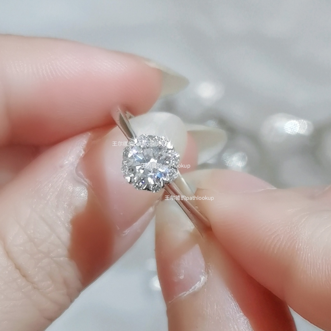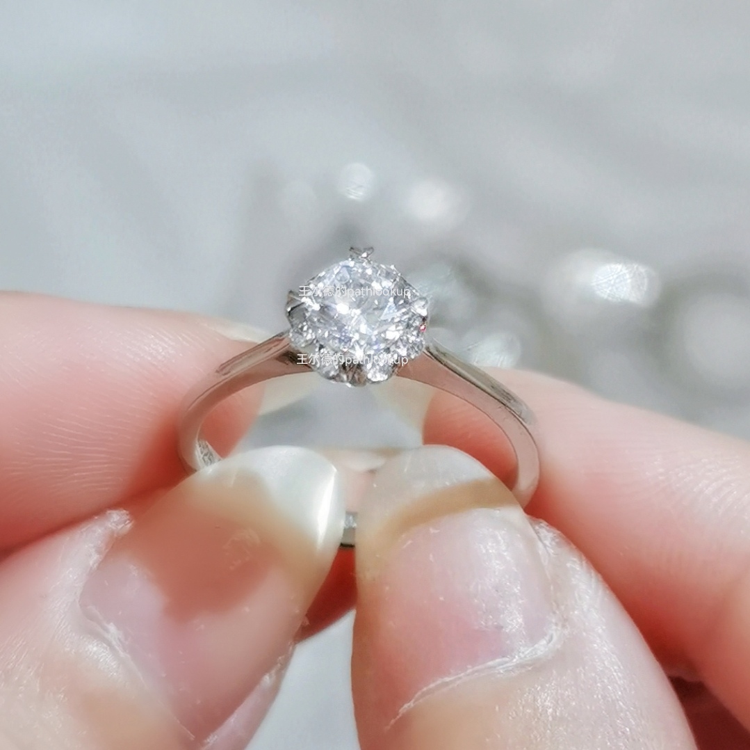 18K金50分爱心四爪高碳钻石戒指女 甜美可爱错落花蕊仿真钻戒首饰