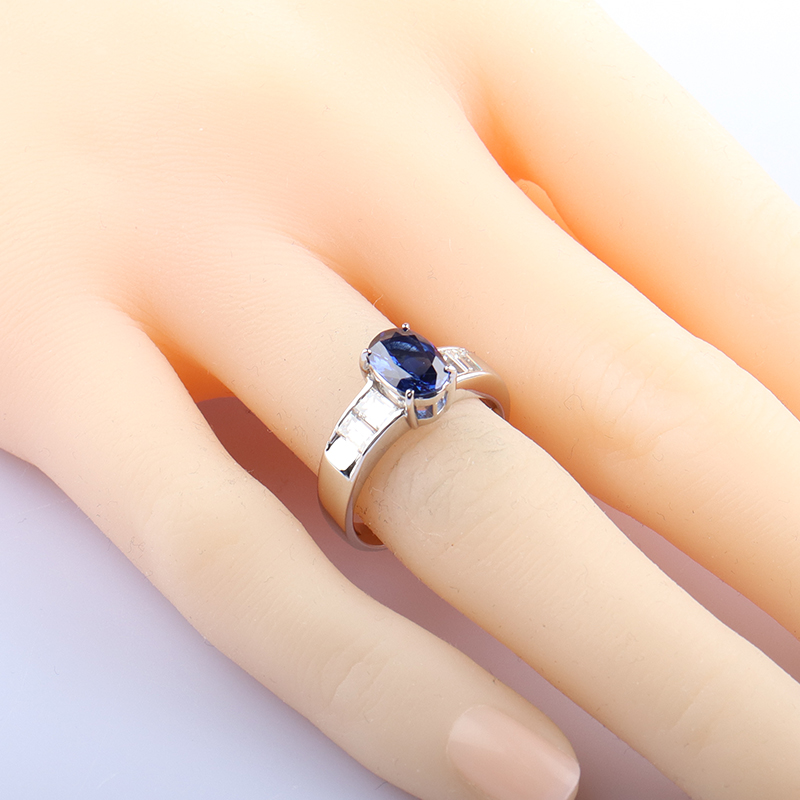 【自营】中古95新日本进口商品椭圆形切工蓝宝石钻石铂金戒指52号