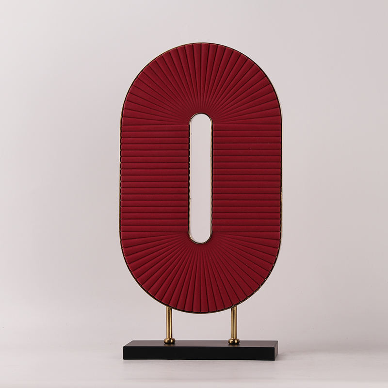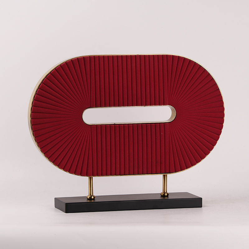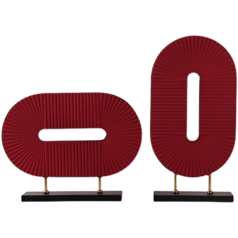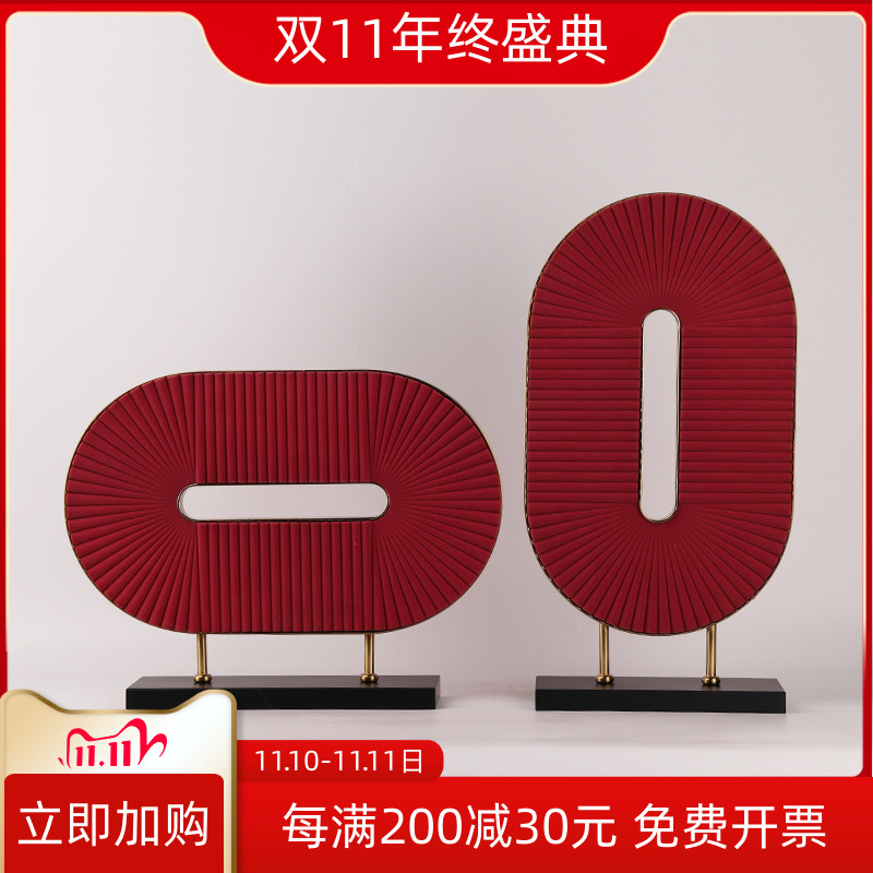 新中式红色c椭圆摆件样板房间售楼处展厅别墅玄关电视柜隔断装饰