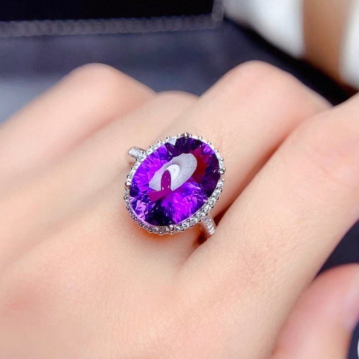新品轻奢时尚天然紫水晶戒指女款925银镀18K金指环网红小红书爆款