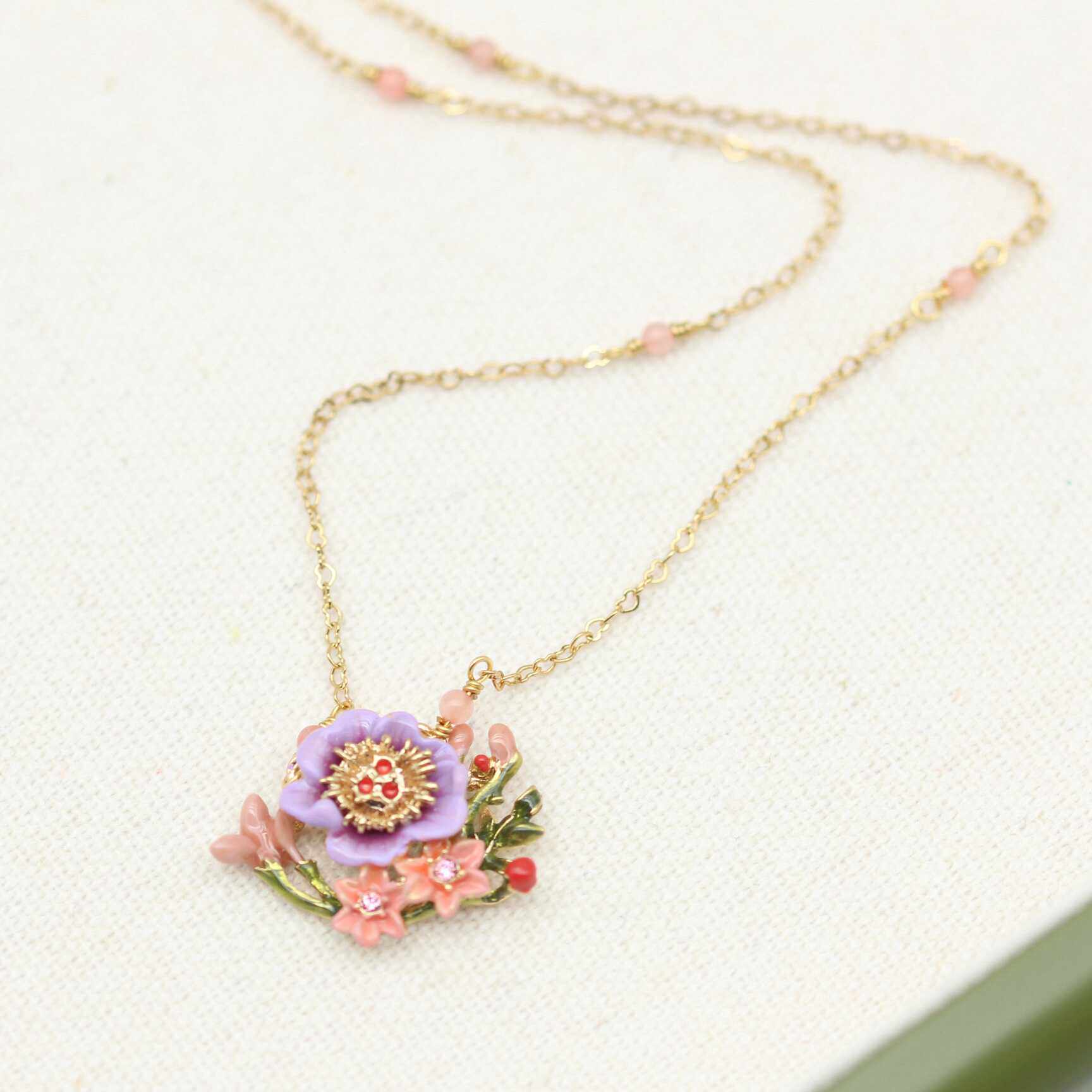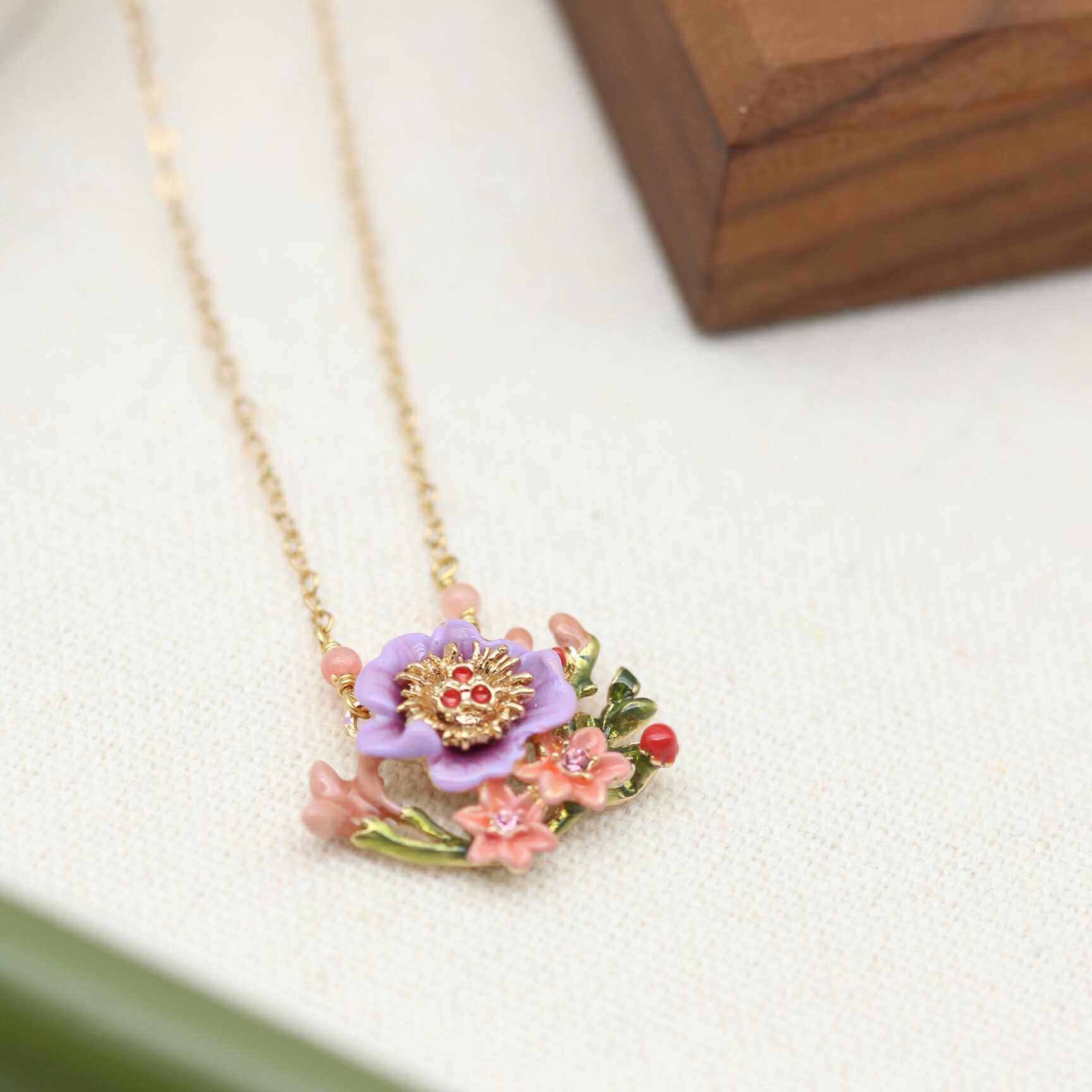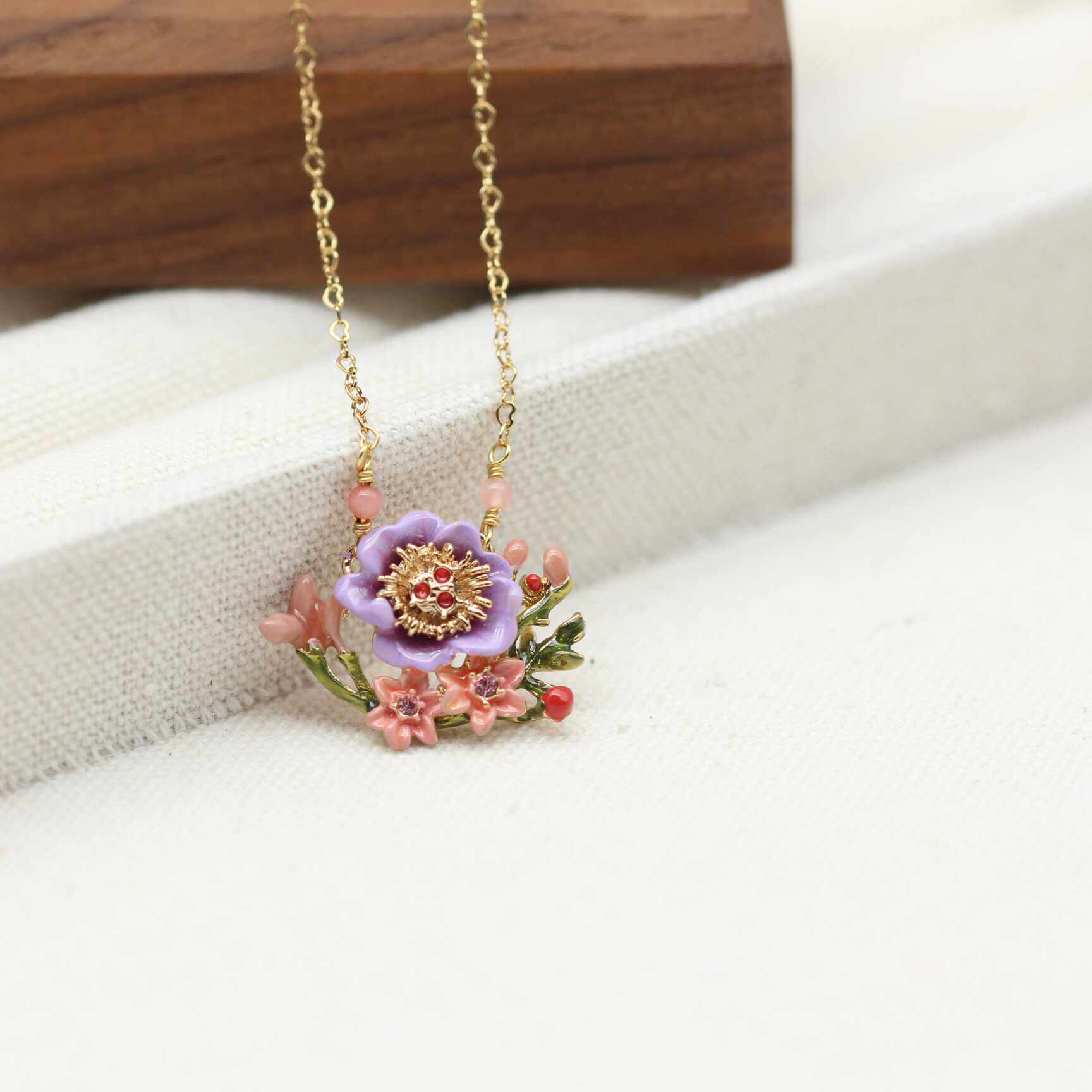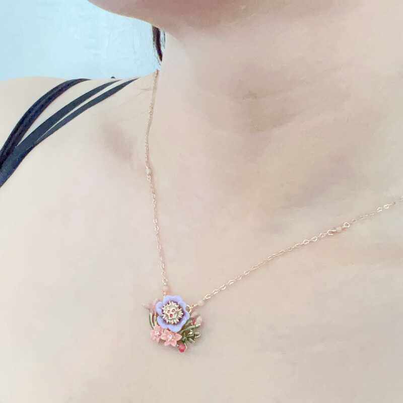 欧美手工打造珐琅釉系列高级感设计女士项链紫色花 可爱系锁骨链
