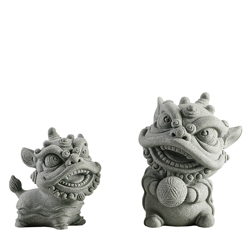 青砂石招财舞狮桌面电视柜装饰摆件创意中式麒麟鱼缸沉水造景摆设