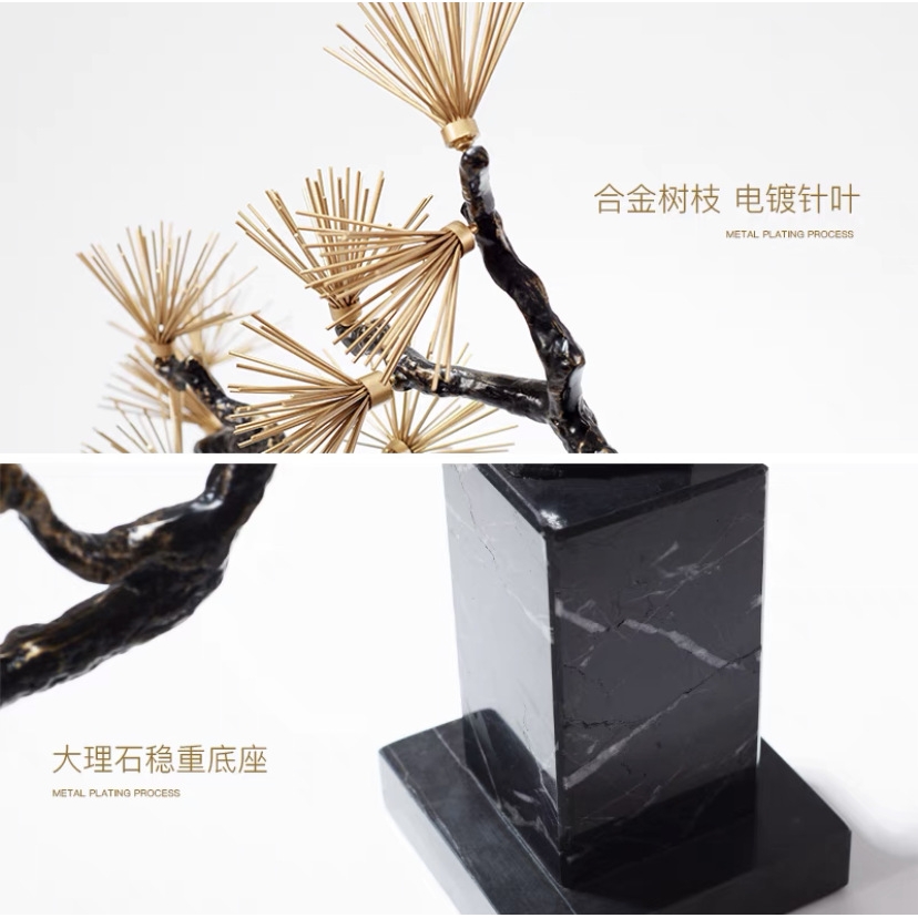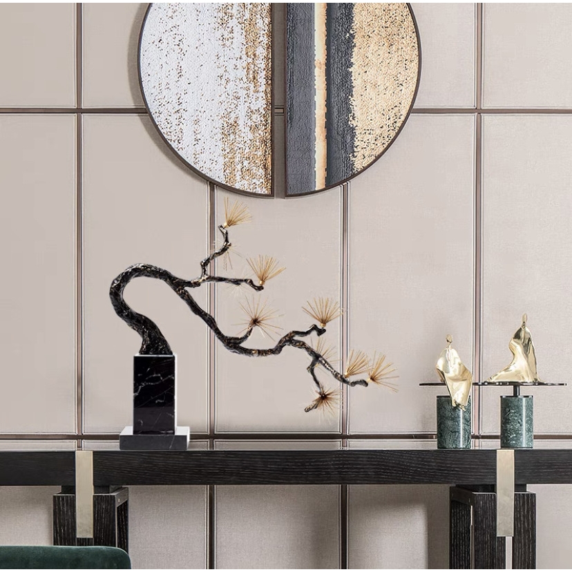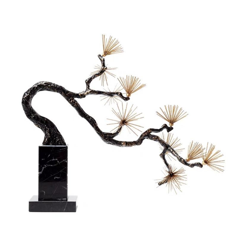 新中式金属雕塑针尖迎客松酒店售楼部软装过道玄关禅意端景台摆件