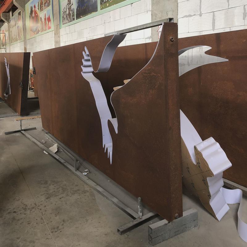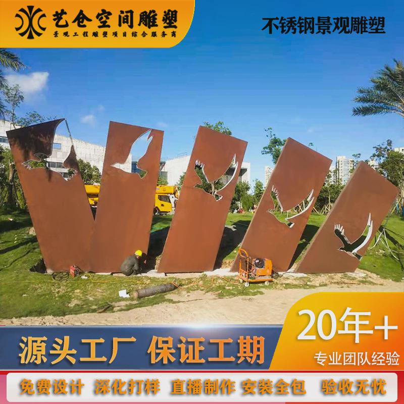 大型耐候钢雕塑飞鸟无缝焊接发光景观钢板复古公园改造艺术品