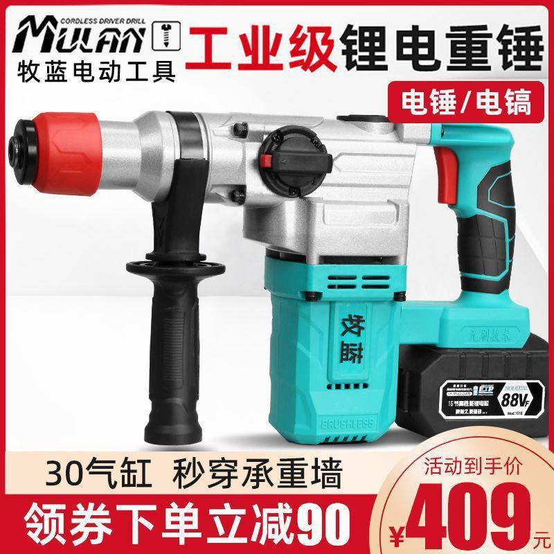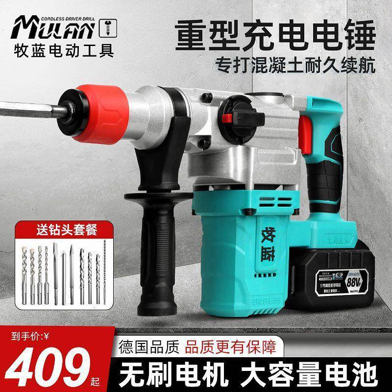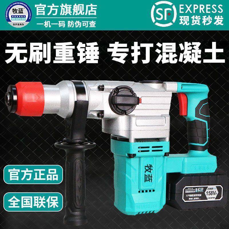 牧蓝无刷充电式电锤电镐大功率冲击钻混凝土工业开凿锂电重垒德株