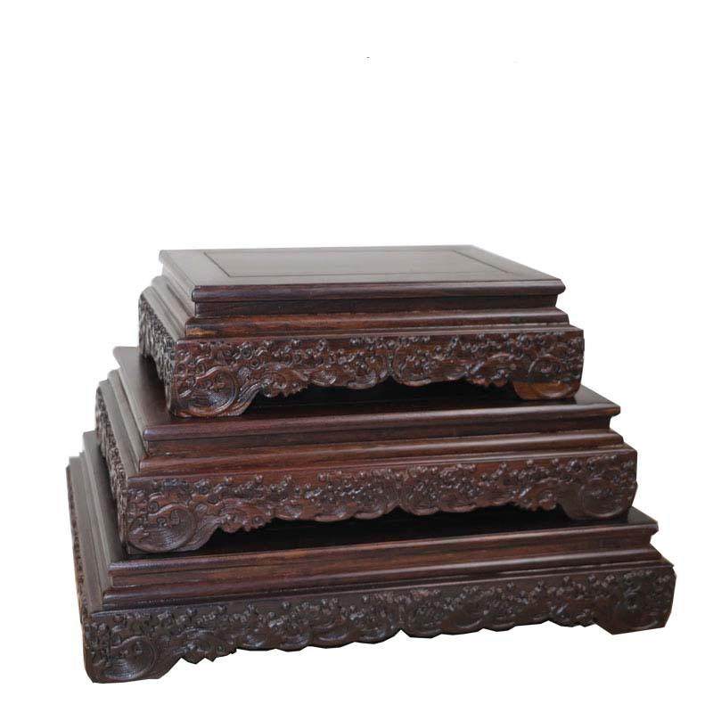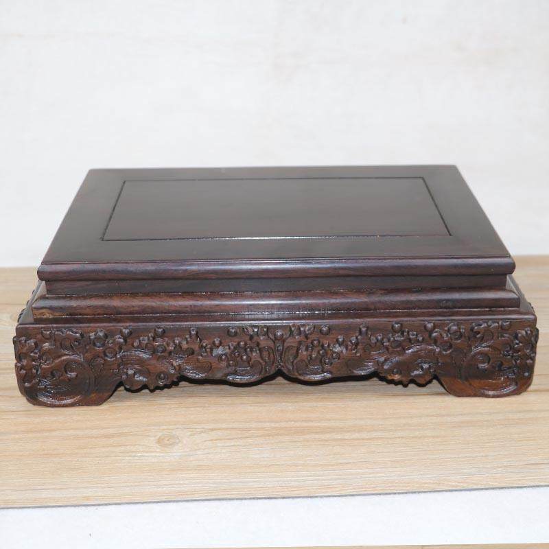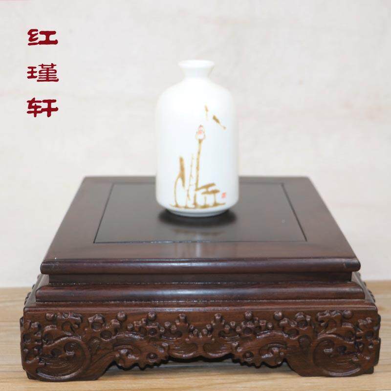 梓木花瓶底座3实质雕刻水浪佛像观音鱼缸摆件木座底奇石红木黑底