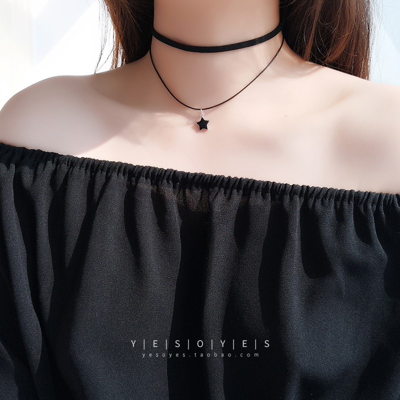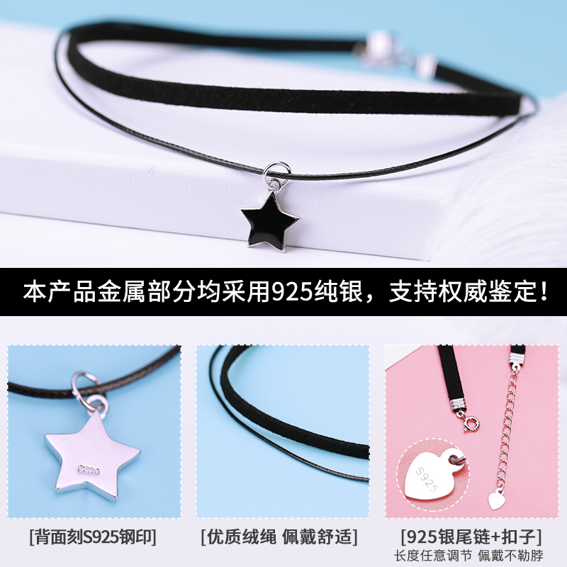 星星双层颈圈黑色项链女choker颈链日韩版锁骨链S925纯银项圈颈带