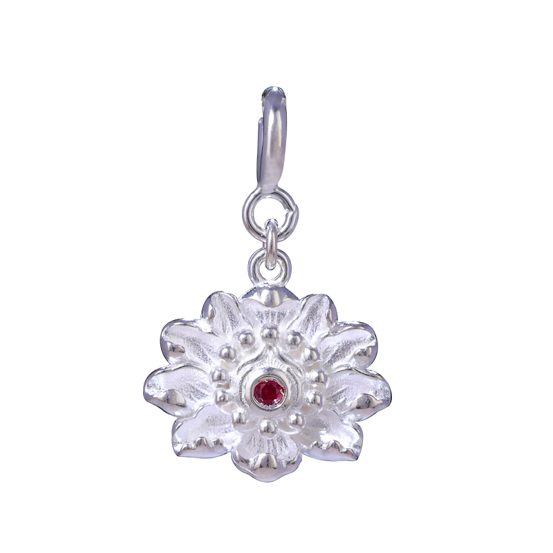 纯银S925乌巴拉花吊坠藏式民族风情侣款银镀金镶嵌宝石挂坠卡扣