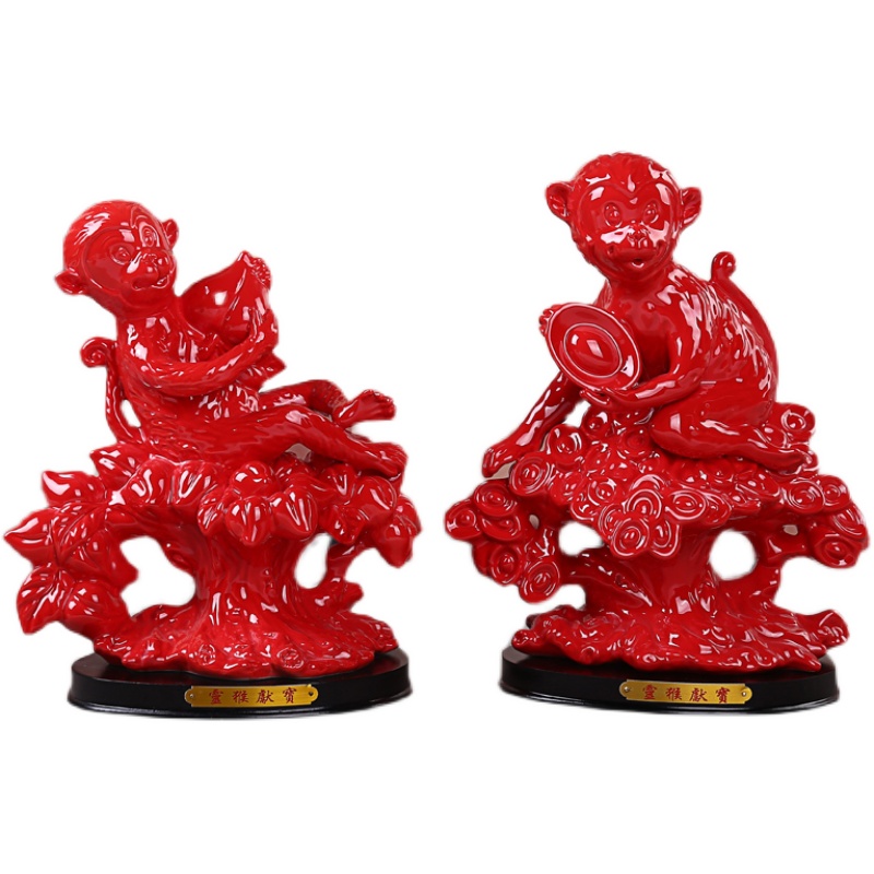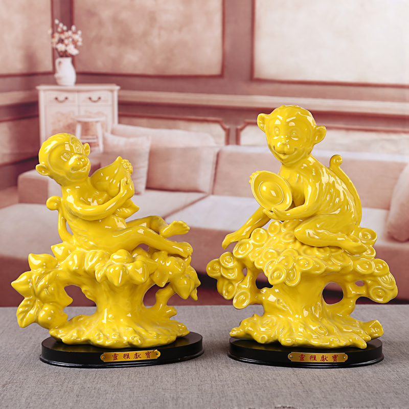 陶瓷猴摆件黄色红色猴十二生肖招财镇宅猴吉祥物家居摆设装饰品
