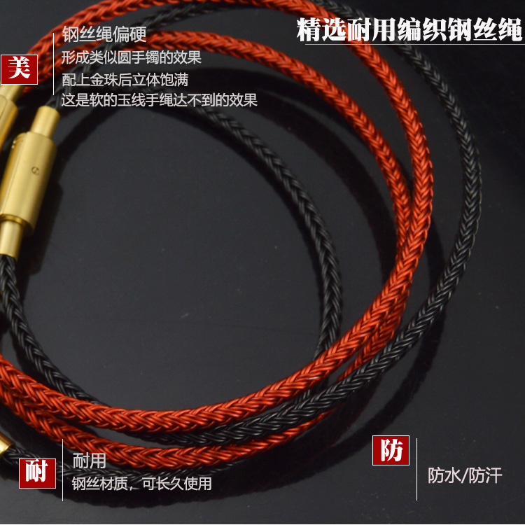 2.5MM钢丝绳穿珠手链可串珠3D硬金金珠手环半成品diy配件配绳