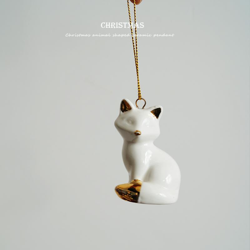 北欧圣诞树挂件 出口欧式描金造型陶瓷小摆件 松鼠小狐狸装饰挂件