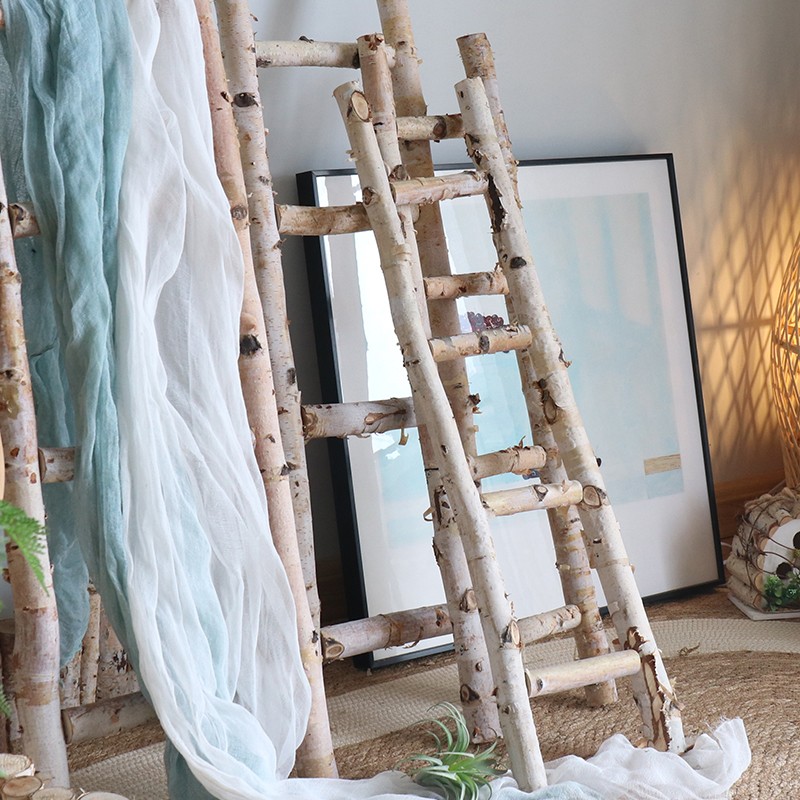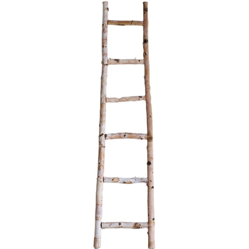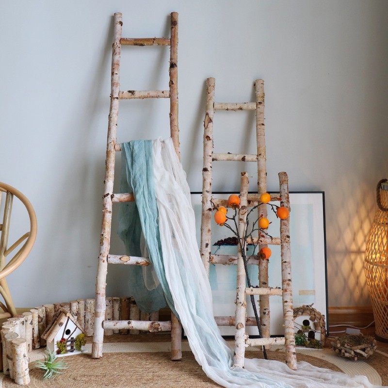 桦木装饰木梯子靠墙摆件拍摄道具橱窗展示花园庭院落地收纳整理架