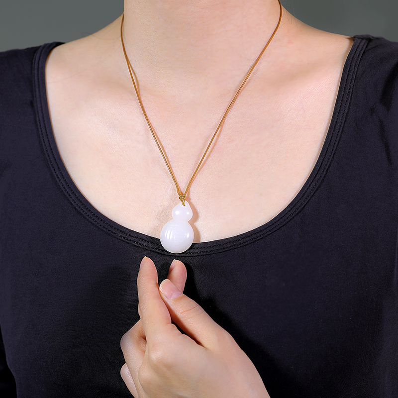 和合玉器和田玉羊脂白玉福禄葫芦吊坠羊脂玉山料立体雕刻玉坠挂件