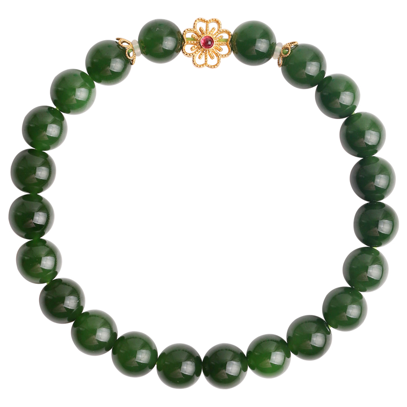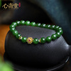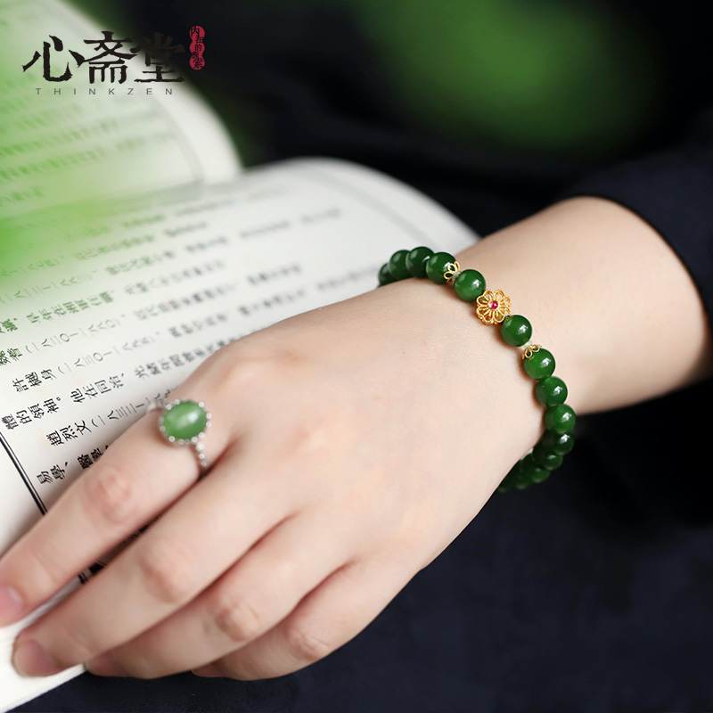 心斋堂【稀见】收藏品冰底菠菜绿碧玉手链老料深绿碧玉和田玉手串