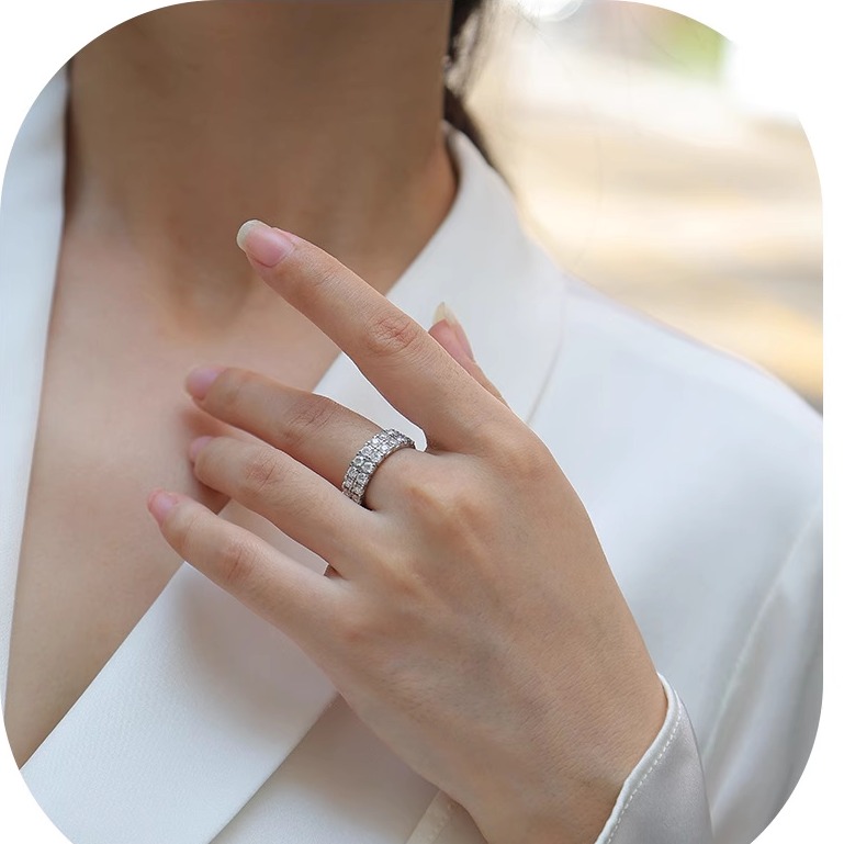 D色vvs级双排莫桑石戒指S925纯银轻奢满钻多层不掉色戒指小众设计