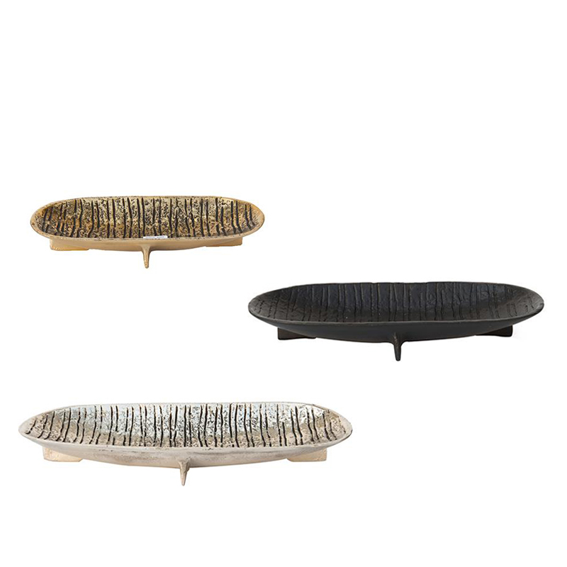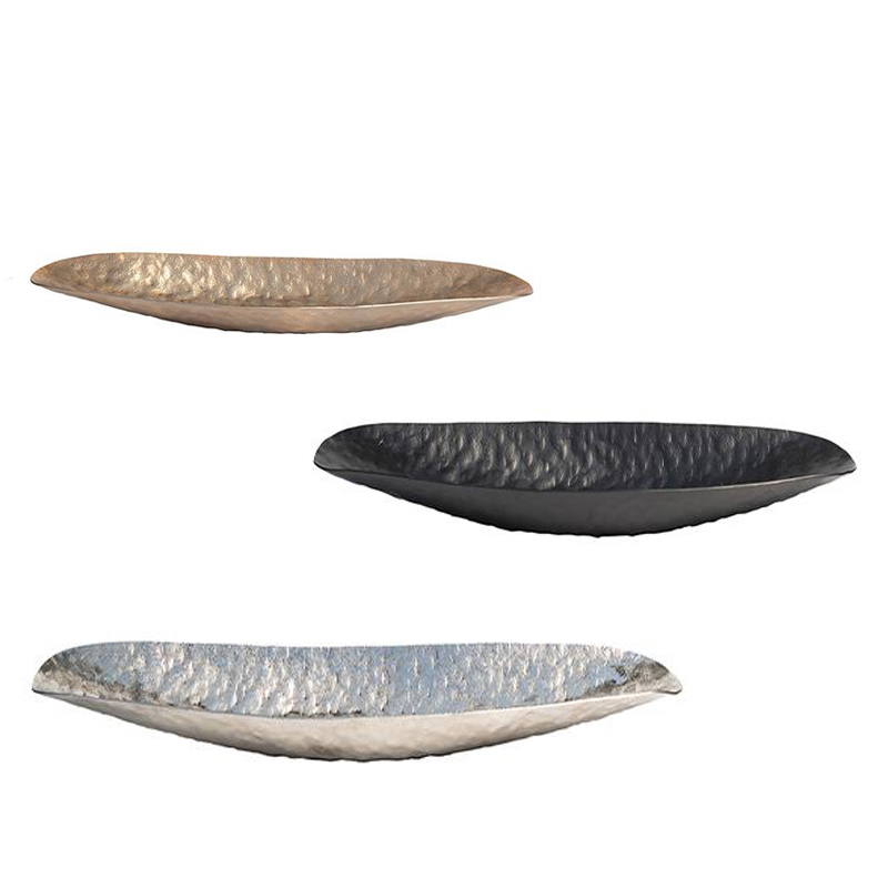 进口手工锤纹复古做旧纹理感铝制长条坚果盘收纳托盘摆件装饰器皿