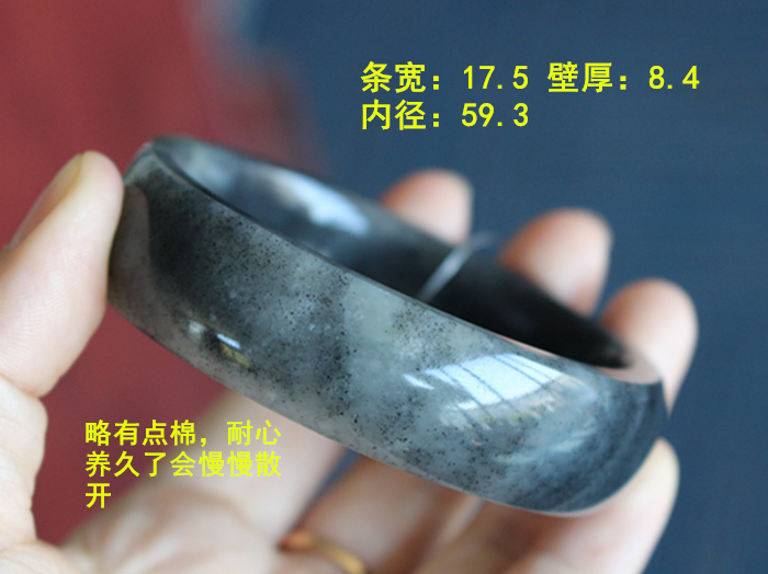 N59.3和田玉老熟墨玉籽料留皮手镯朕®开仓