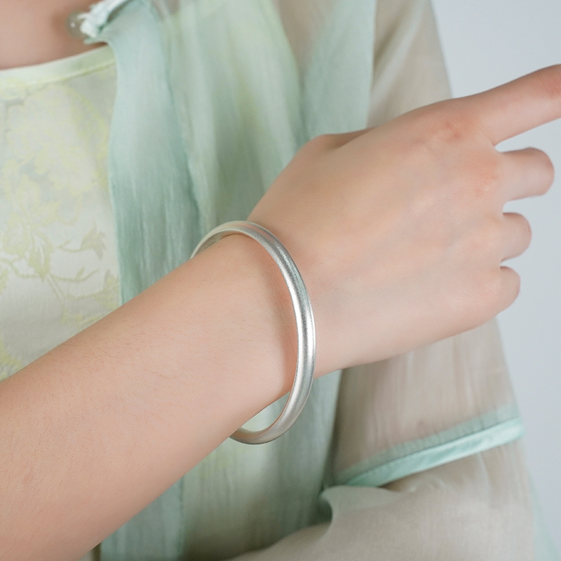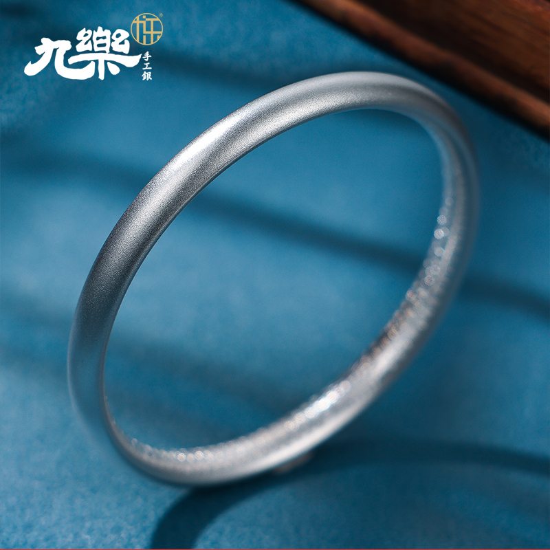 九乐999银手镯女纯银古法手镯闭口心经银镯子本命年手环送女友礼