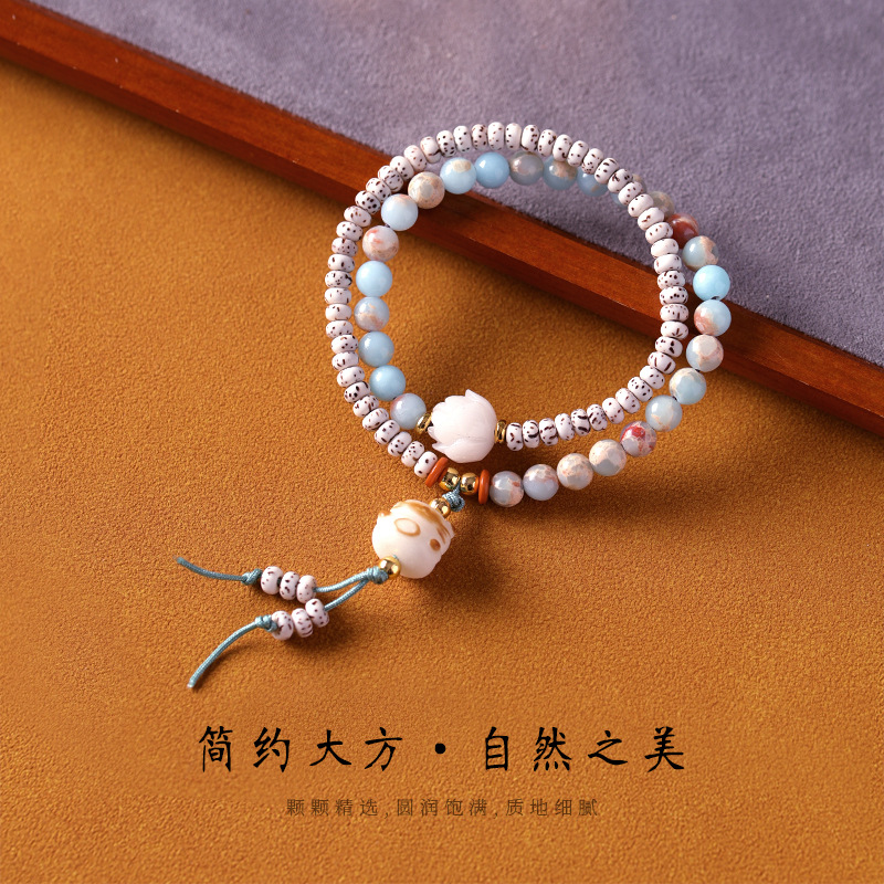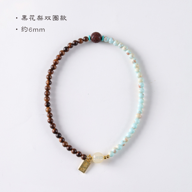 黑花梨寿山石DIY手链 香樟木星月菩提简约猫咪配件新中式双圈手链
