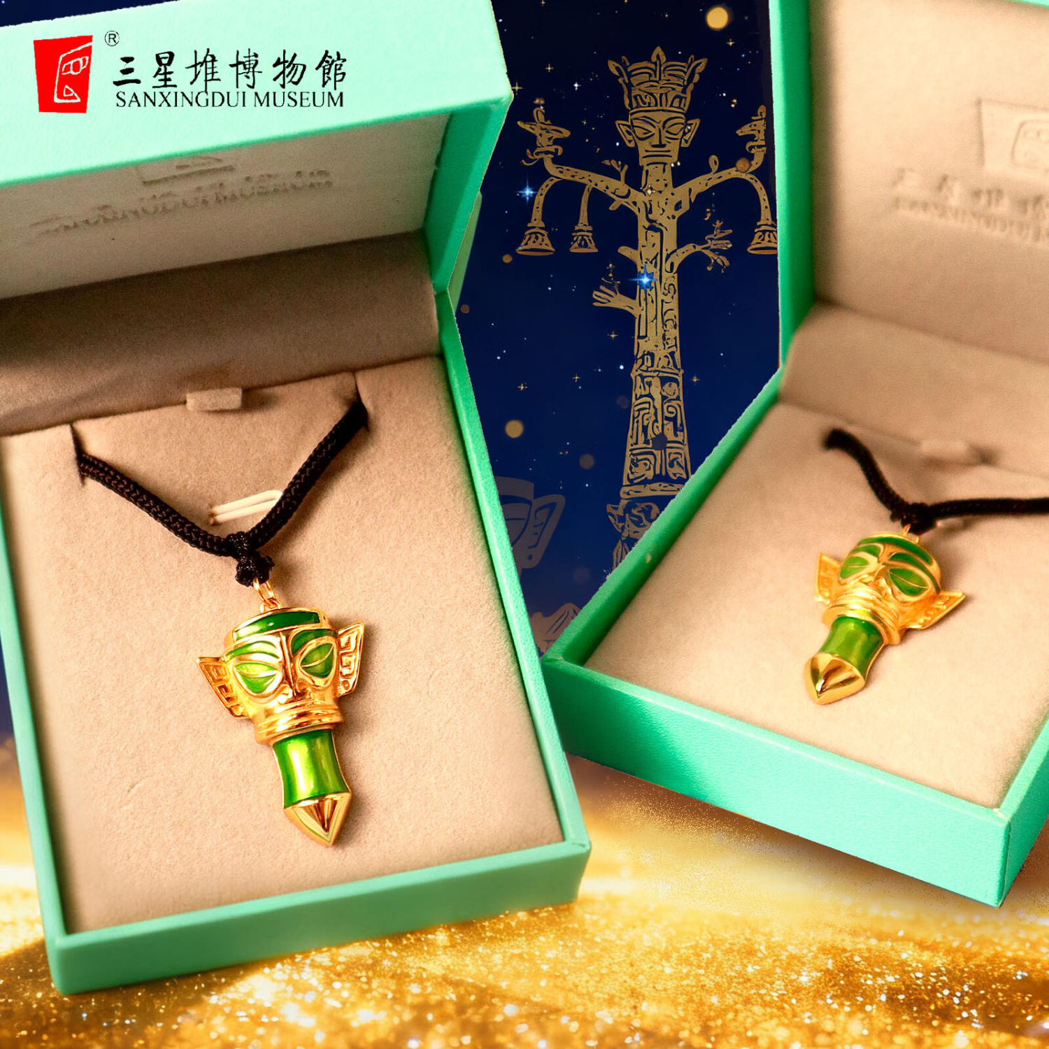 三星堆博物馆文创神鸟青铜颜项链礼盒套装礼物镀金项链礼物纪念品