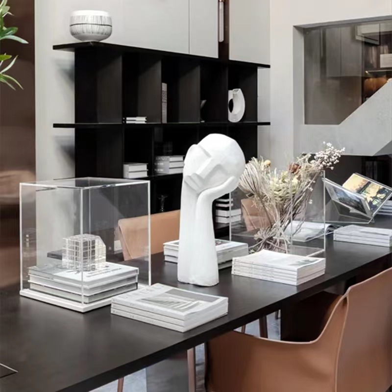 现代轻奢软装样板房间客厅设计师款白色歪头人像雕塑家居桌面摆件