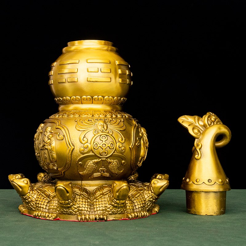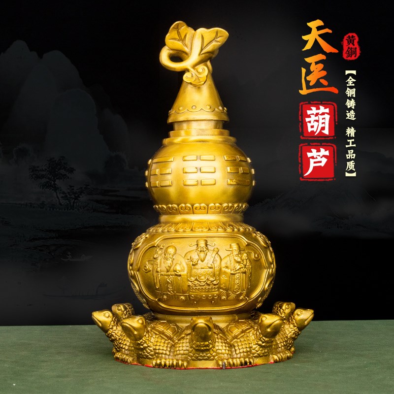 纯黄铜天医葫芦桌面摆件九龟八卦葫芦开口办公室客厅玄关酒柜装饰