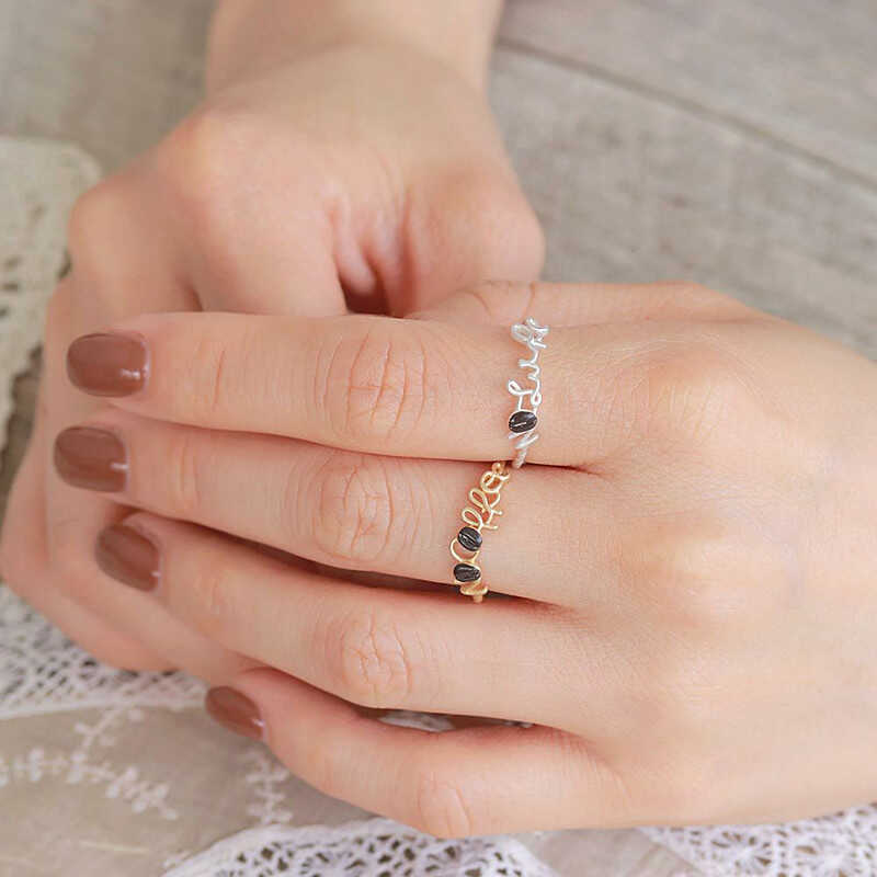 日本OSEWAYA咖啡豆Ayatorie手作no coffee no life绕线字母开口戒