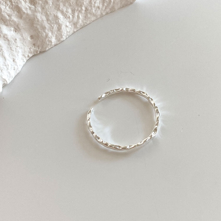 不规则锤纹戒指女s925纯银精致小巧手工捶打纹理细戒韩版简约百搭